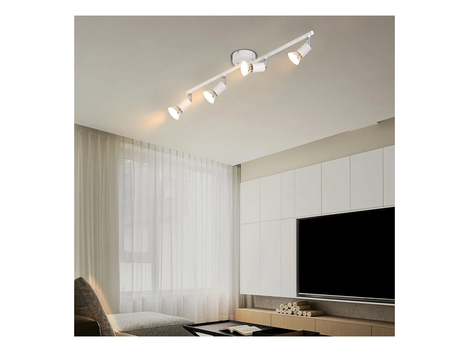 NETTLIFE Opbouwspot 6-lichts GU10 Fitting wit Metaal draaibar Plafondspot L 108cm Vintage Plafondlamp voor Slaapkamer | Hal | Woonkamer | Keuken Zonder Lichtborn