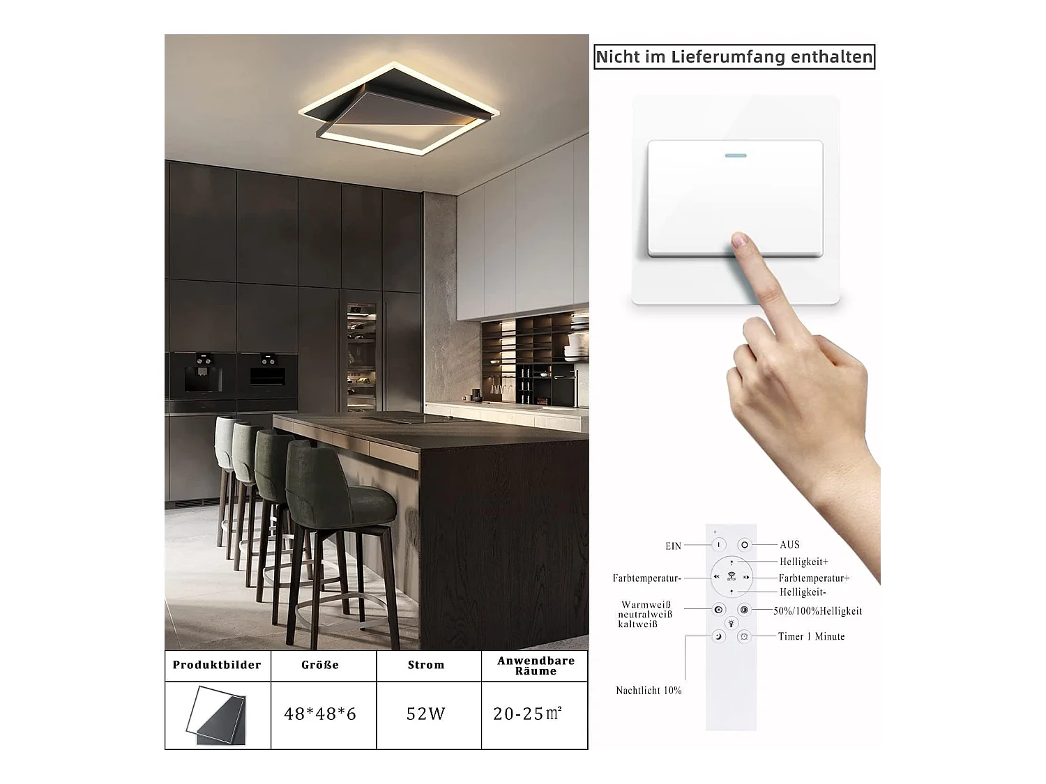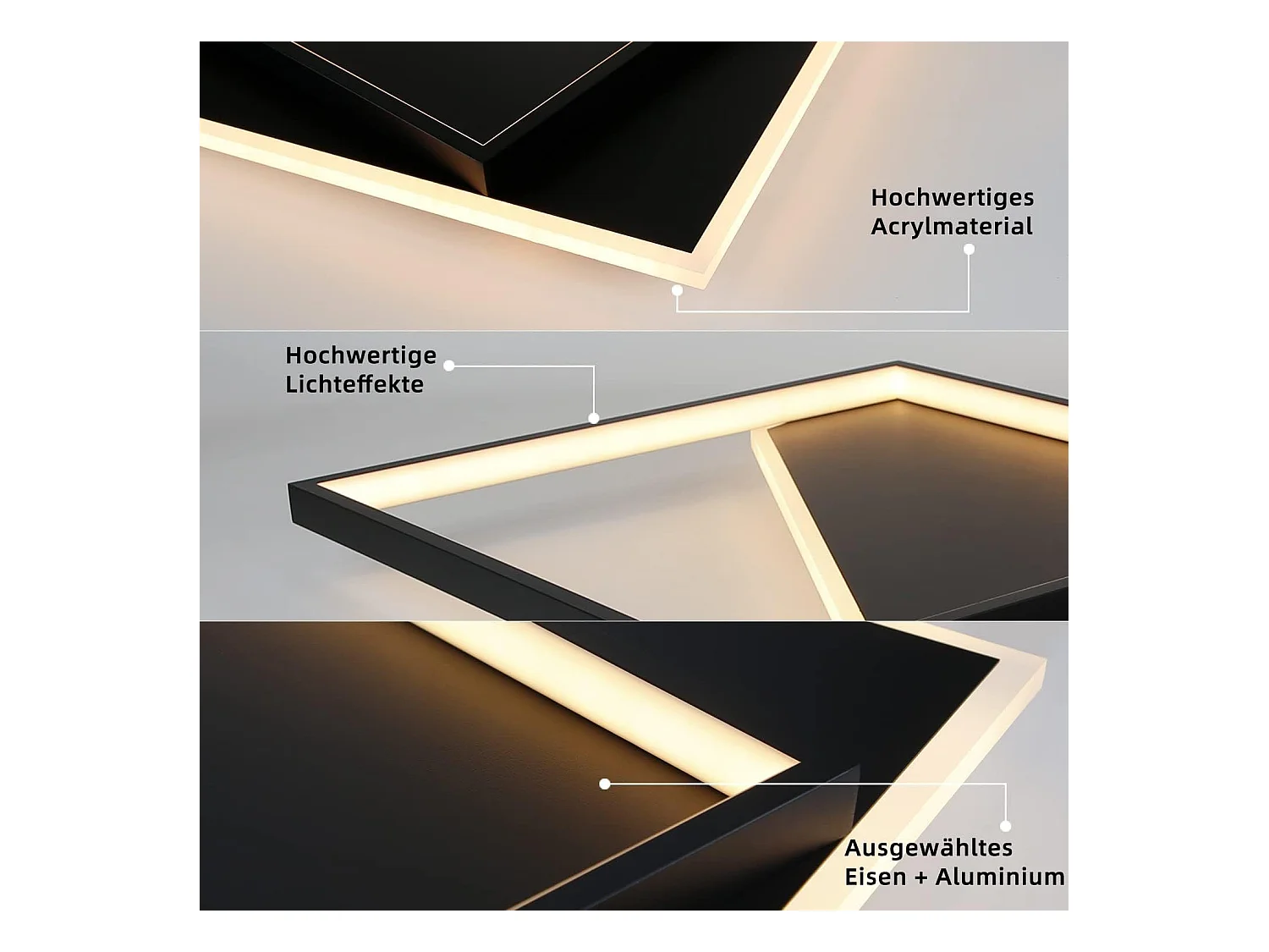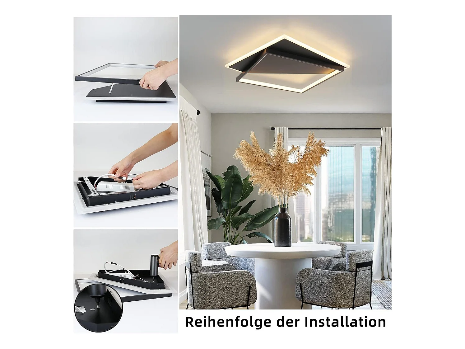 NETTLIFE Plafondlamp LED zwart 42W vierkant 2-Lichts 3000-6000K Dimbaar Metaal Moderne Keukenverlichting met Afstandsbediening voor Woonkamer Slaapkamer Eetkamer