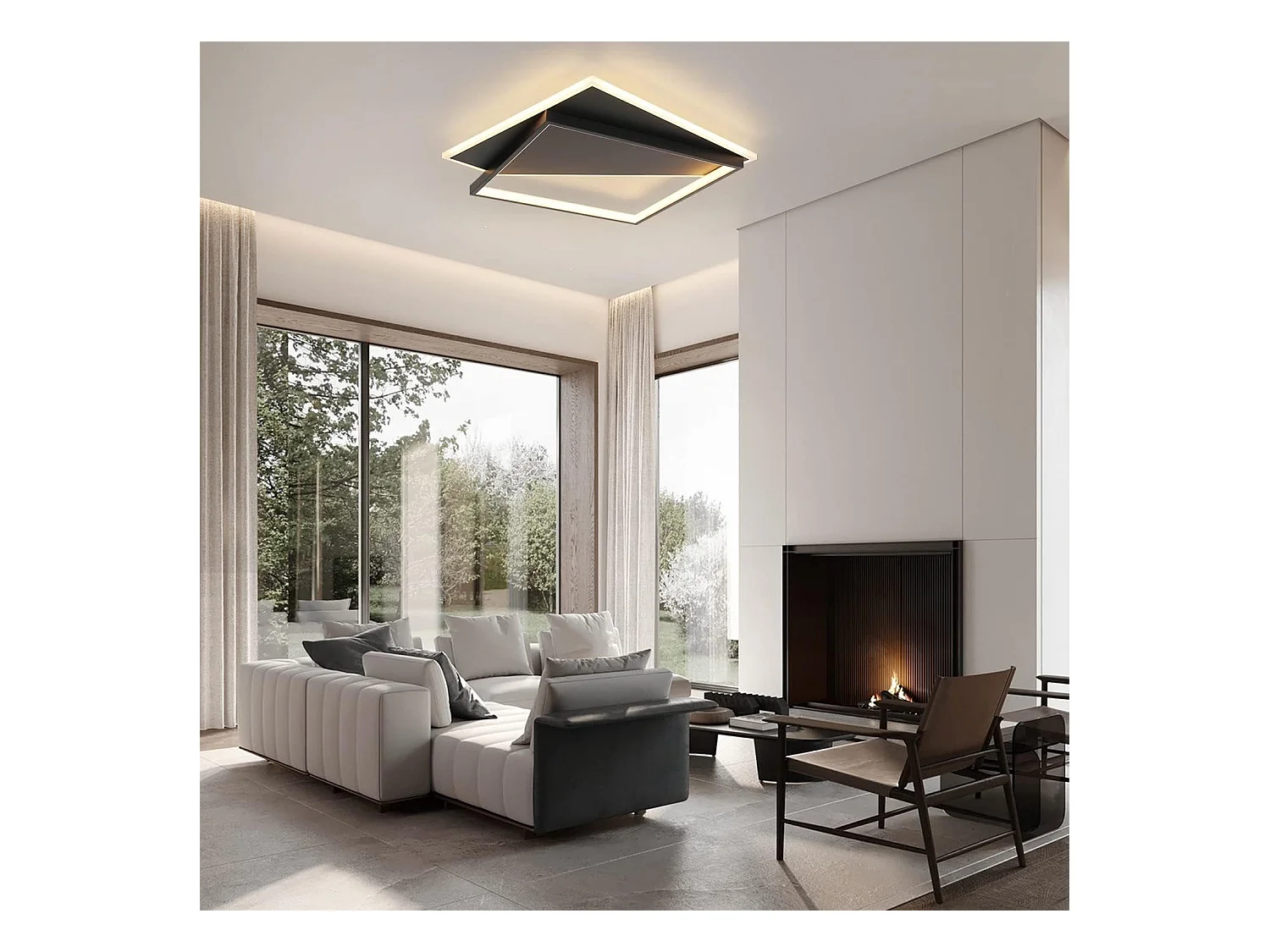 NETTLIFE Plafondlamp LED Zwart modern vierkant 3000K Warm wit Licht 2 Lichts geometrische Design Plafondverlichting 24W voor Woonkamer | Slaapkamer | Keuken | Gang