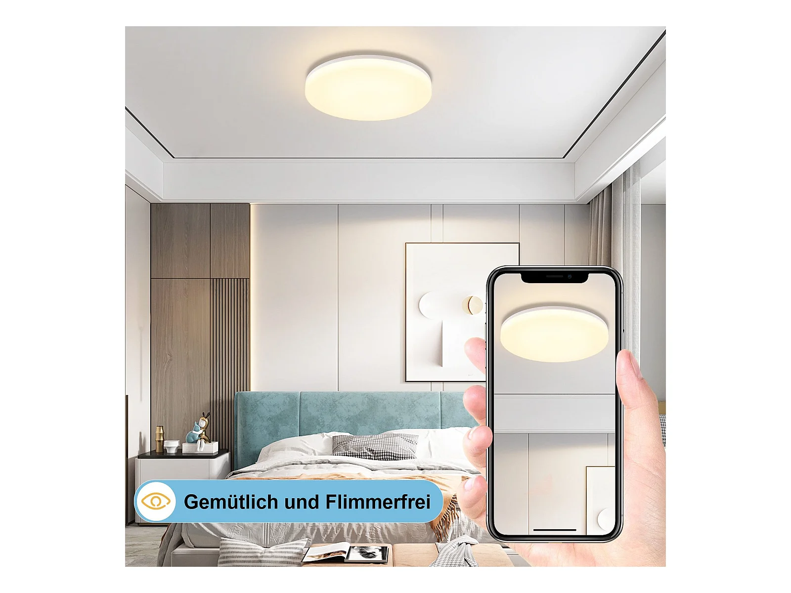 NETTLIFE LED plafondlamp badkamer plafondlamp Ø30cm slaapkamerlamp rond wit 24W ganglamp 3000K
