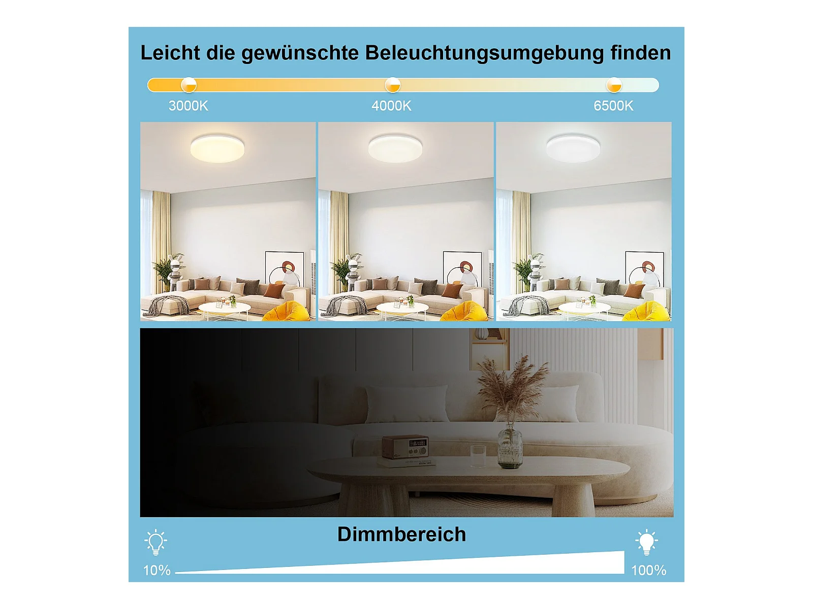 NETTLIFE LED Badkamer Plafondlamp Ø30cm Slaapkamerlamp Keukenlamp Plat 4000K 18W Badkamerlamp IP44