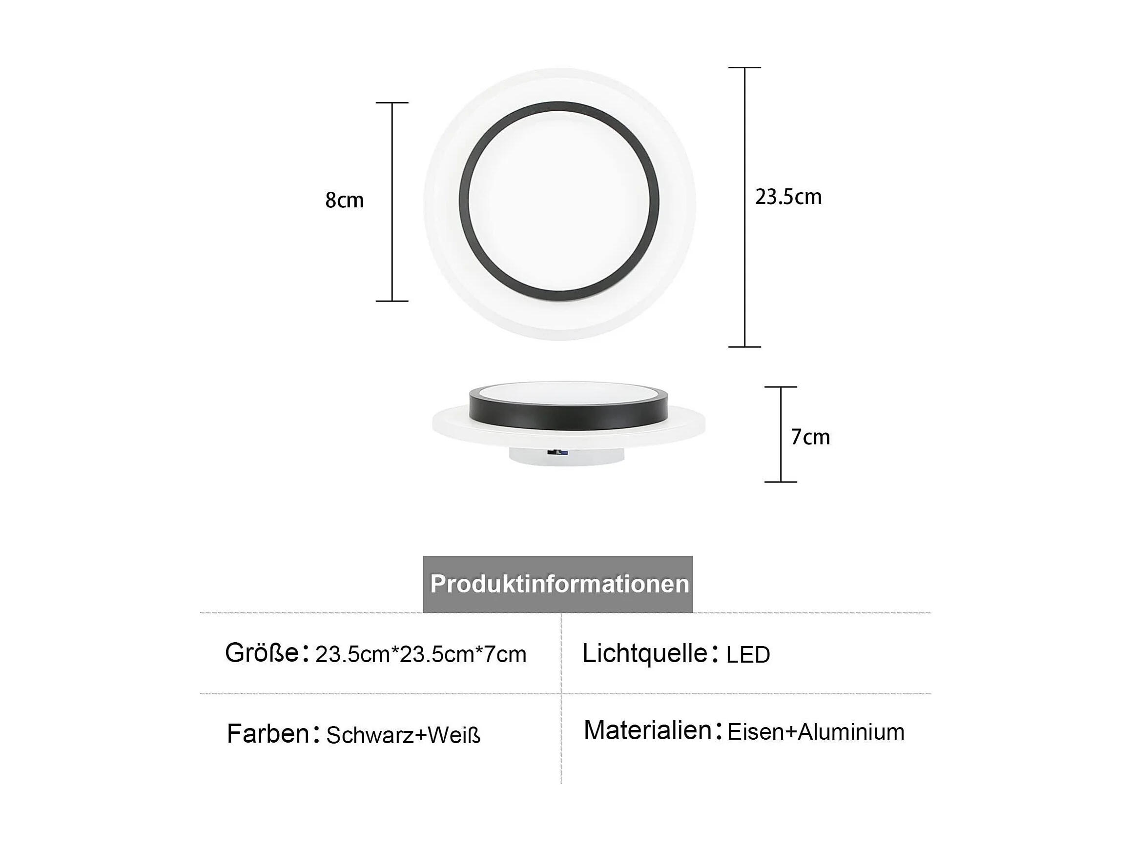 NETTLIFE Plafondlamp LED - rond - Wit en Zwart - 23.5cm - 3000K Warm Wit Licht - Moderne Slaapkamerverlichting - voor Keuken | Woonkamer | Hotel - 14W