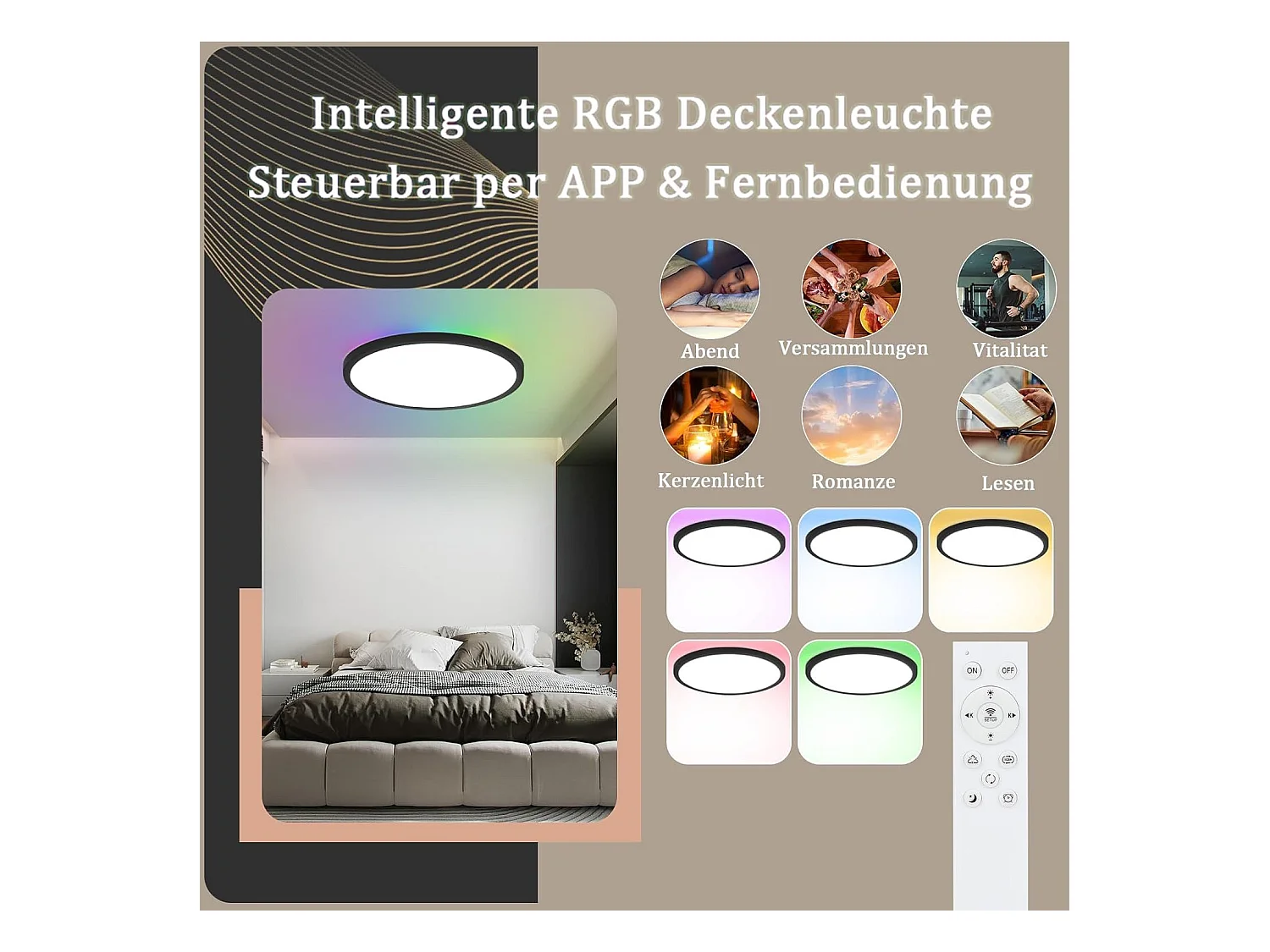 NETTLIFE kleurveranderende LED-plafondlamp met dimbare afstandsbediening, diameter 30 cm voor slaapkamer, badkamer, gang