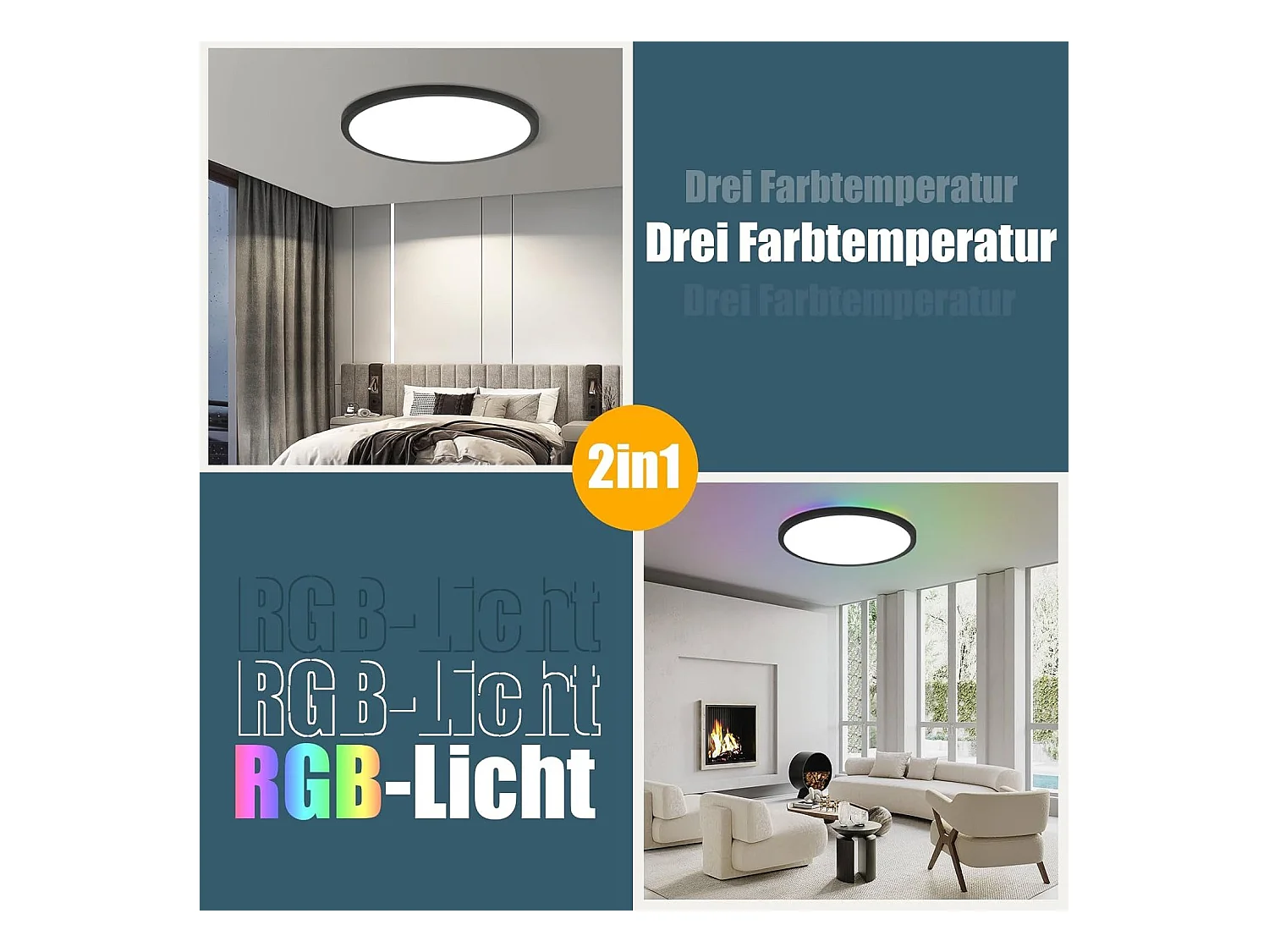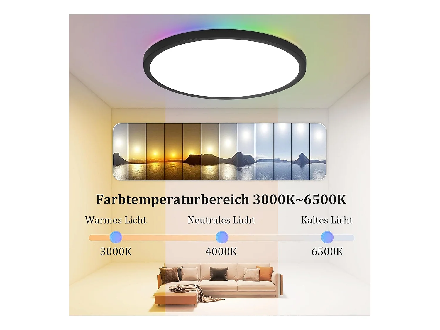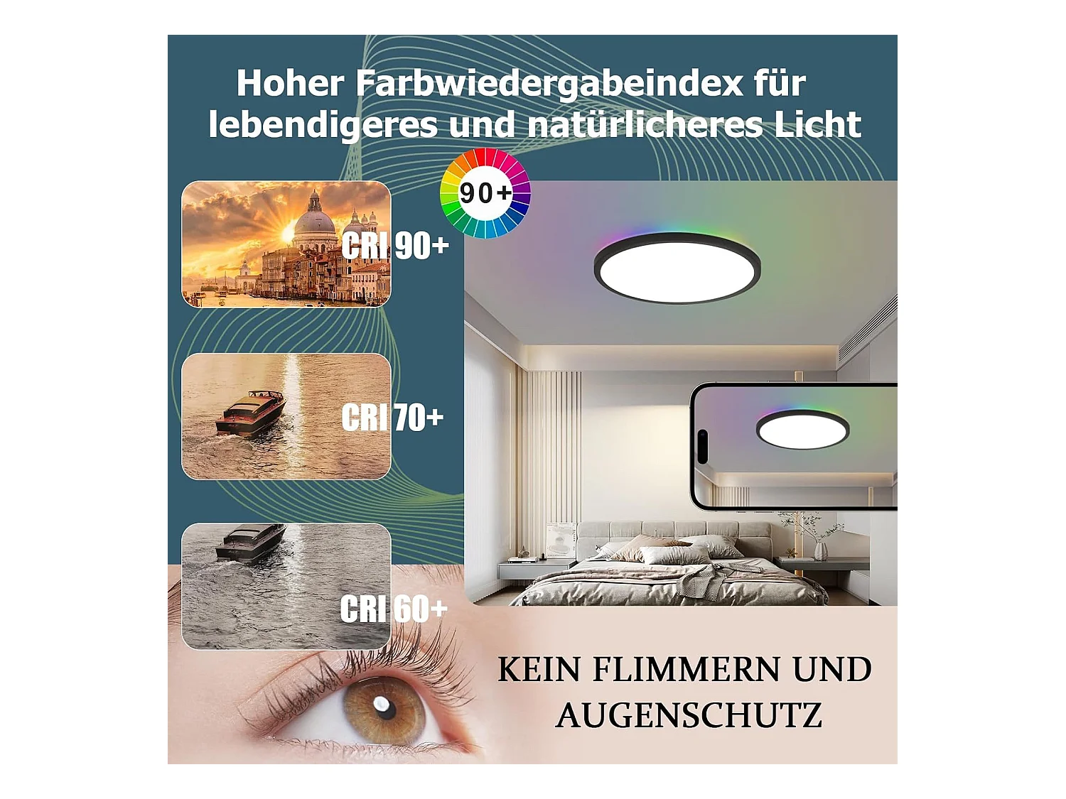 NETTLIFE 36W RGB LED plafondlamp, rond zwart, dimbaar, plat, met afstandsbediening, kleurveranderend, IP44, voor slaapkamer en badkamer