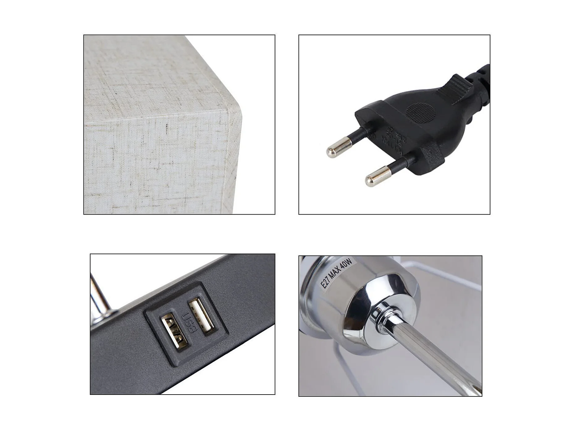 NETTLIFE Touch Bedside Lamp Dimbare Stoffen Kap Vintage Tafellamp E27 met USB Oplaadfunctie