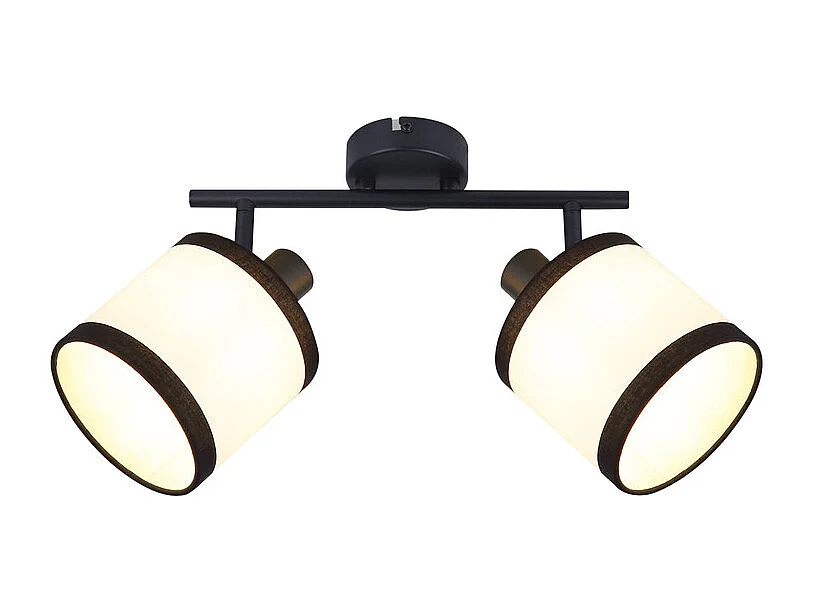 NETTLIFE Zwarte plafondspot, hallamp, 2-vlammig - E14 LED plafondspots, stoffen plafondlamp, verstelbaar, vintage (zonder lamp)