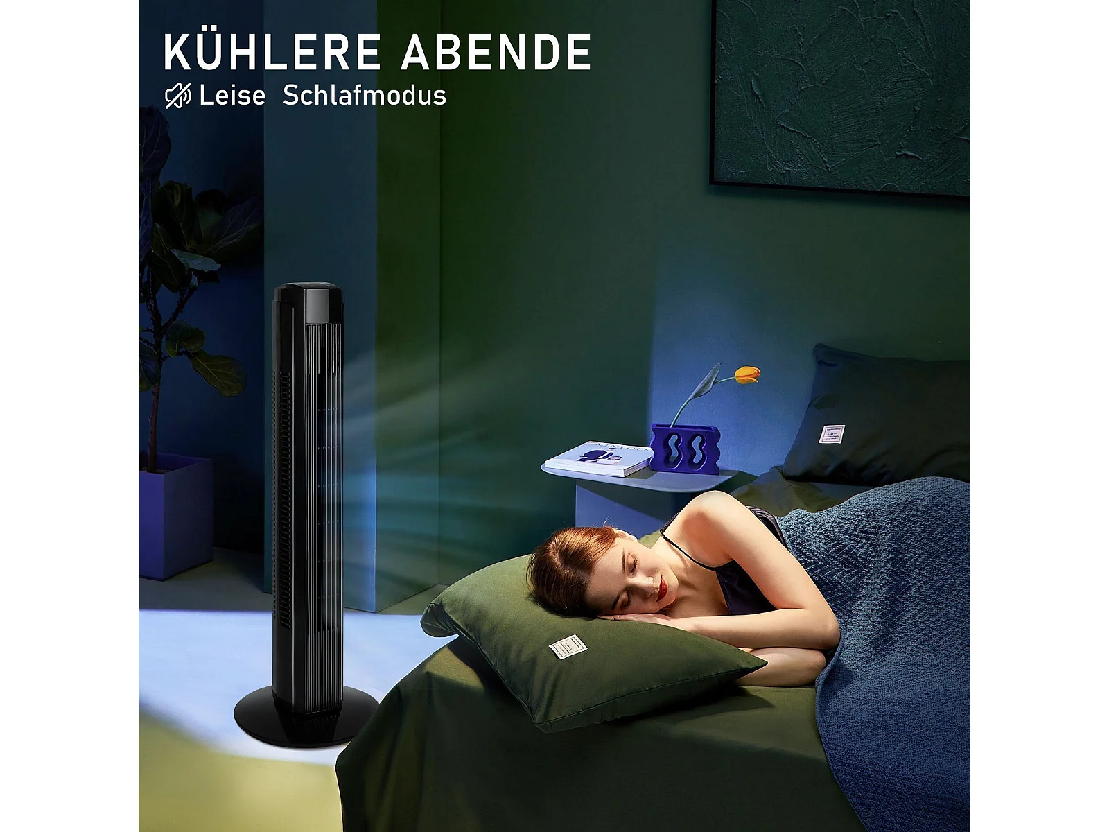 NETTLIFE Zwarte, stille 90° oscillerende torenventilator voor slaapkamer met afstandsbediening
