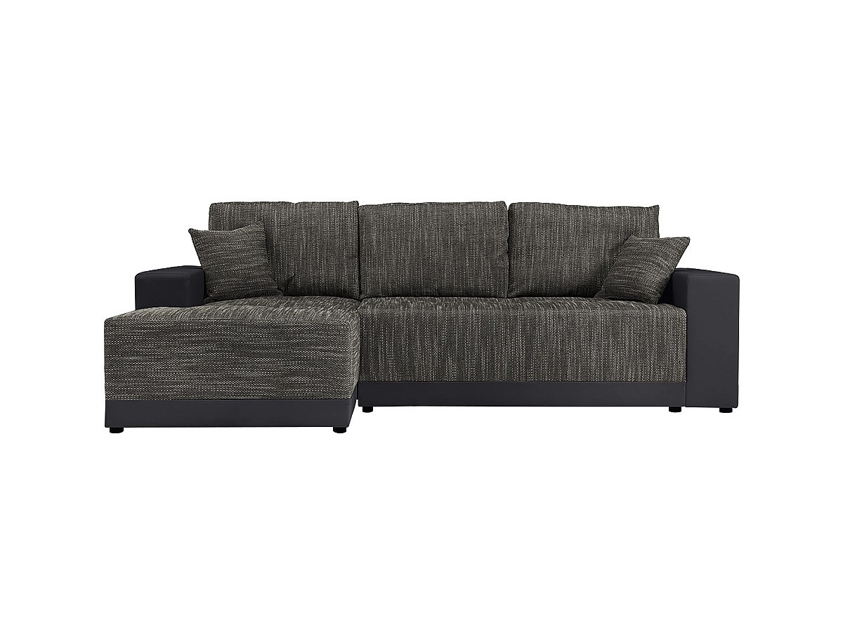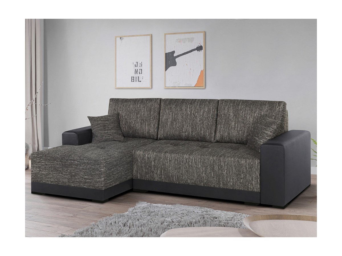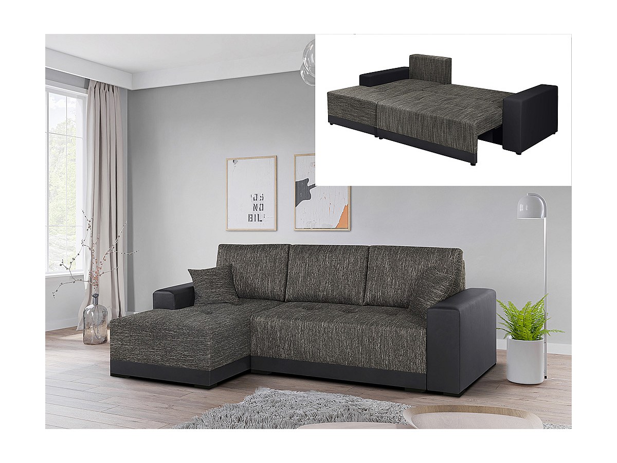 Hoekbedbank van stof en kunstleer JARED II - Tweekleurig antraciet en zwart - Hoek links