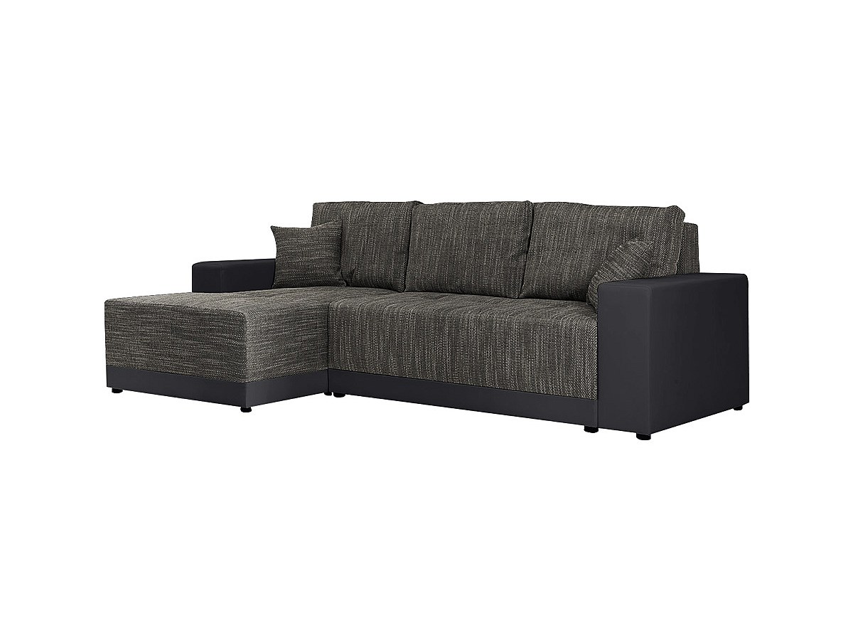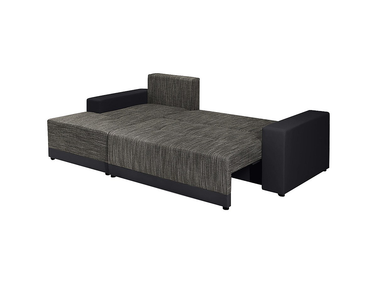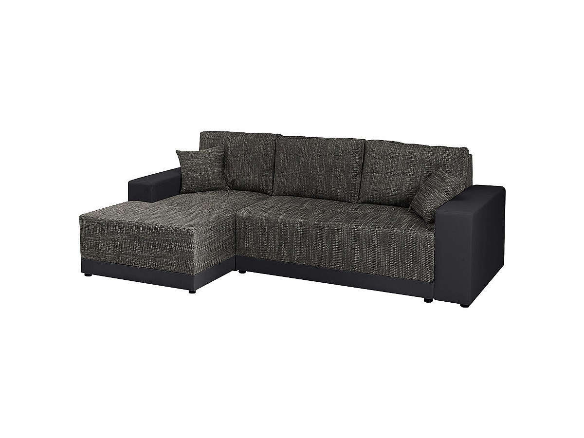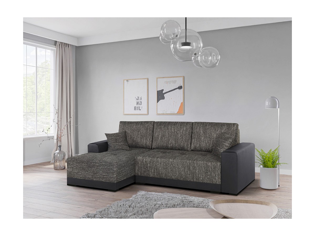Hoekbedbank van stof en kunstleer JARED II - Tweekleurig antraciet en zwart - Hoek links
