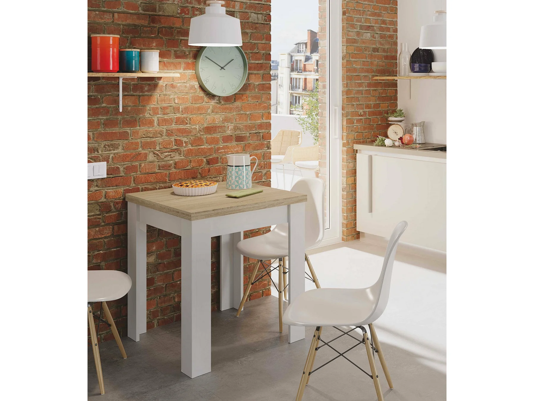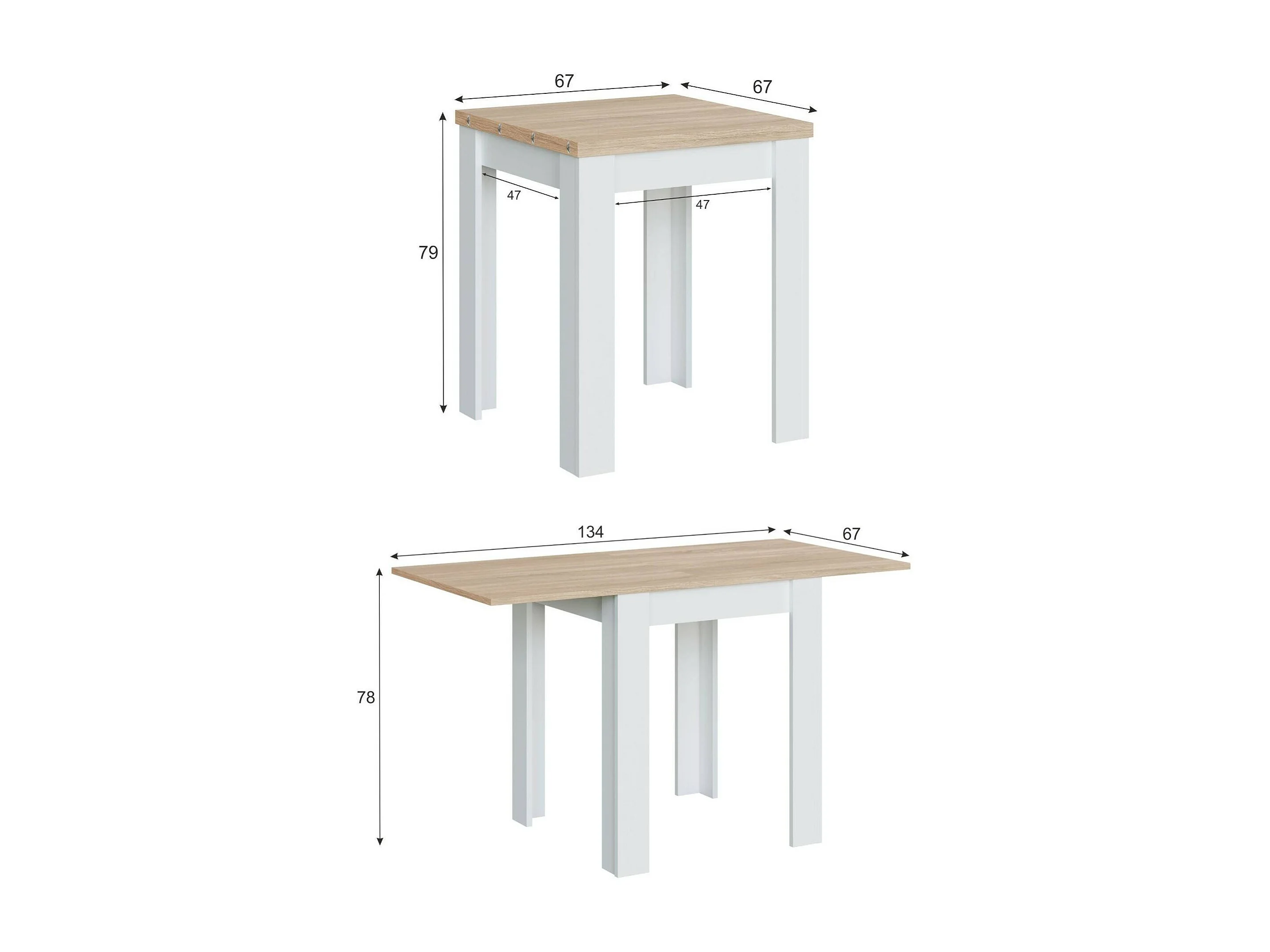 Dmora Uitrekbare Tafel Newark 67x67x79h cm Wit, Voor 6 Personen, Vouwbaar Uittrekmechanisme