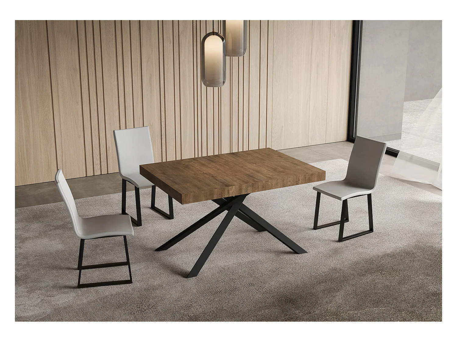 Niket notenhouten uitschuiftafel 140/224x80cm met antraciet poten