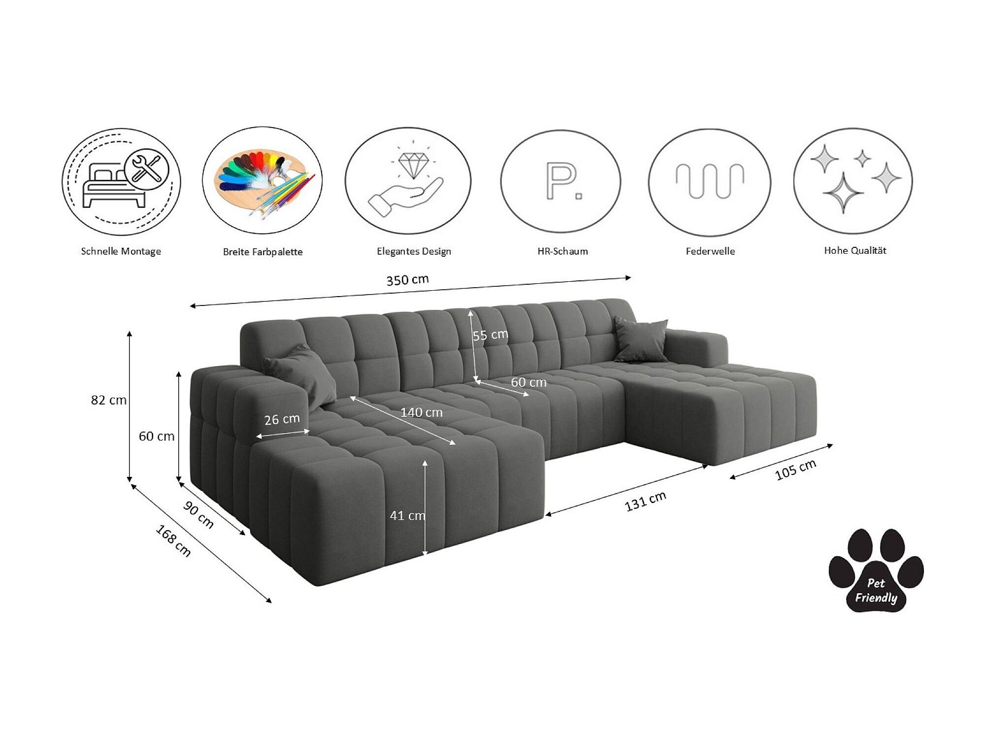 NIMES U-vormige hoekbank, stof Portland, antraciet
