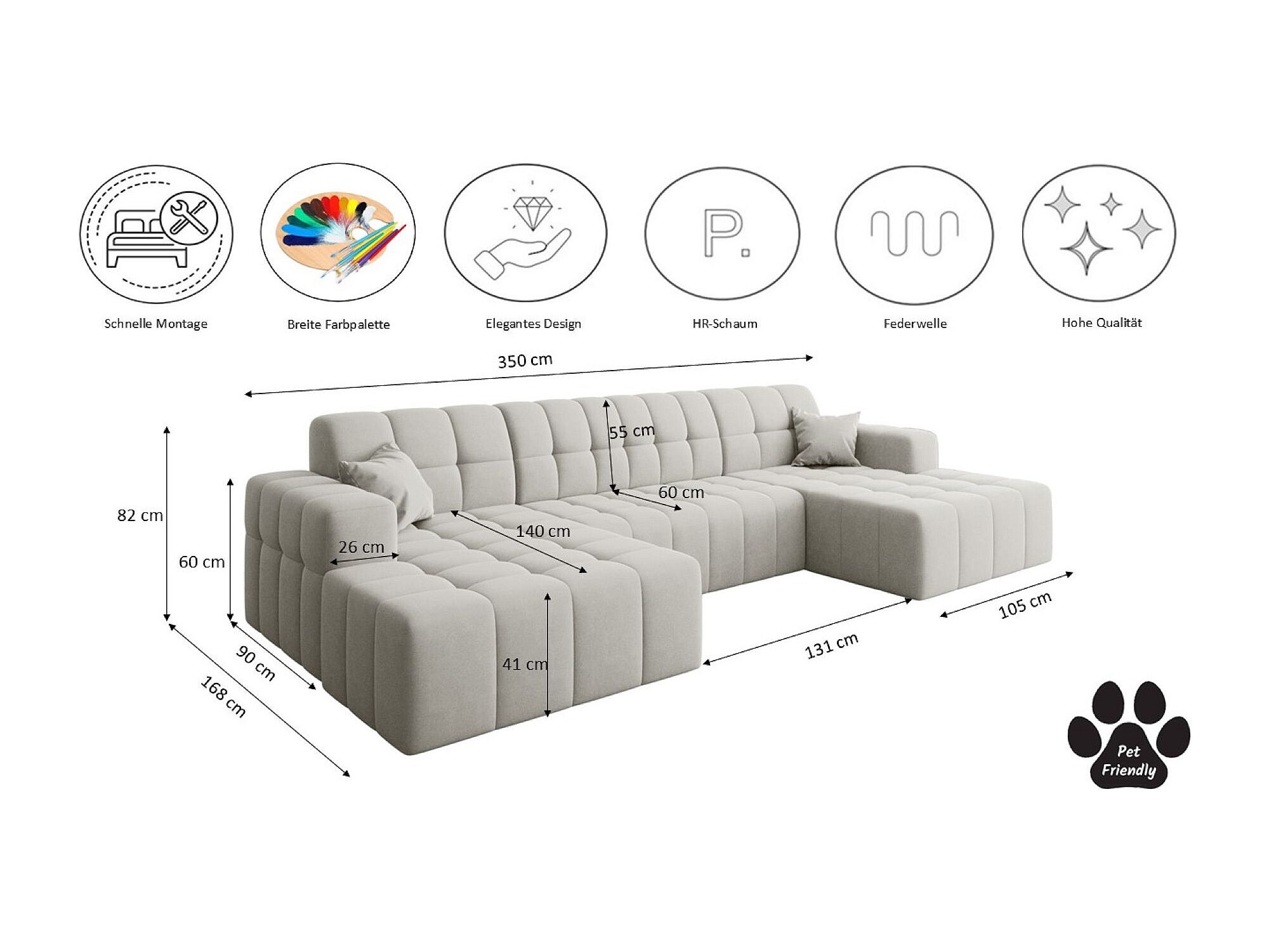 NIMES U-vormige hoekbank, stof Portland, wit