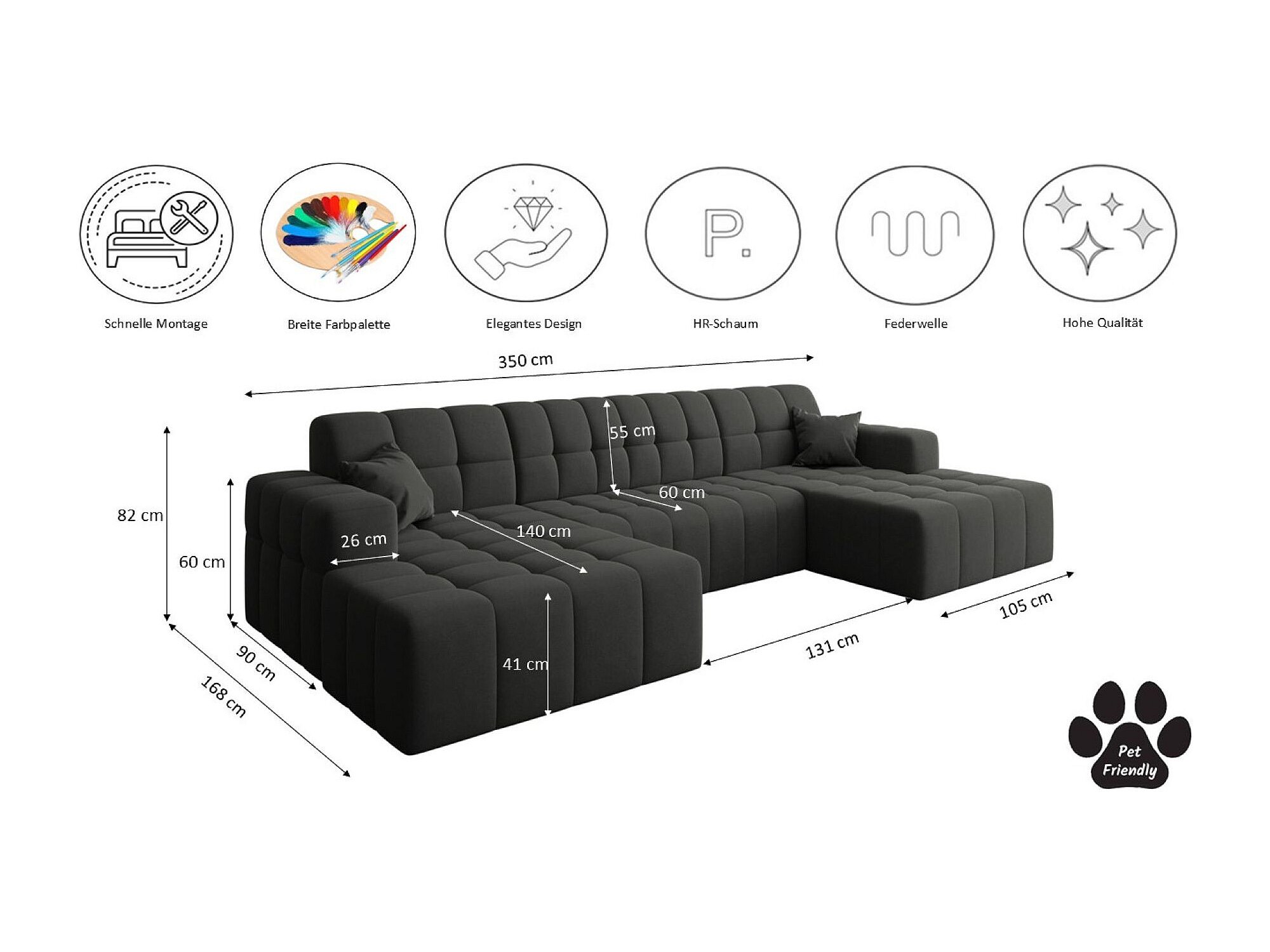 NIMES U-vormige hoekbank, stof Portland, zwart