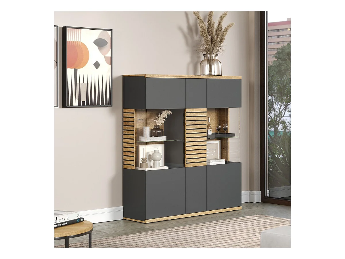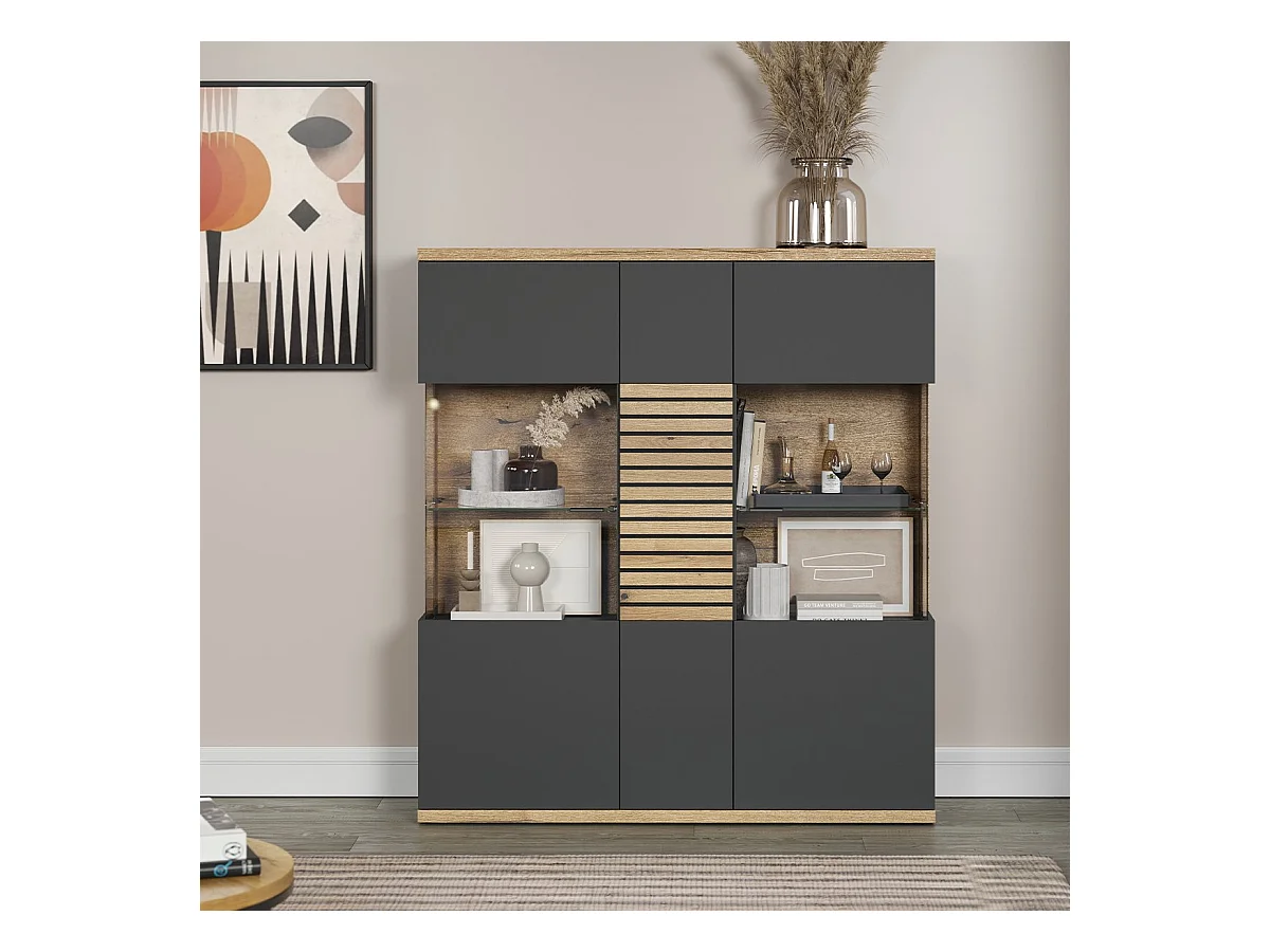 Dressoir WINDSOR antracietgrijs en donkereiken - 110 cm - 2 laden, 6 vakken - 107 x 110 x 44 cm