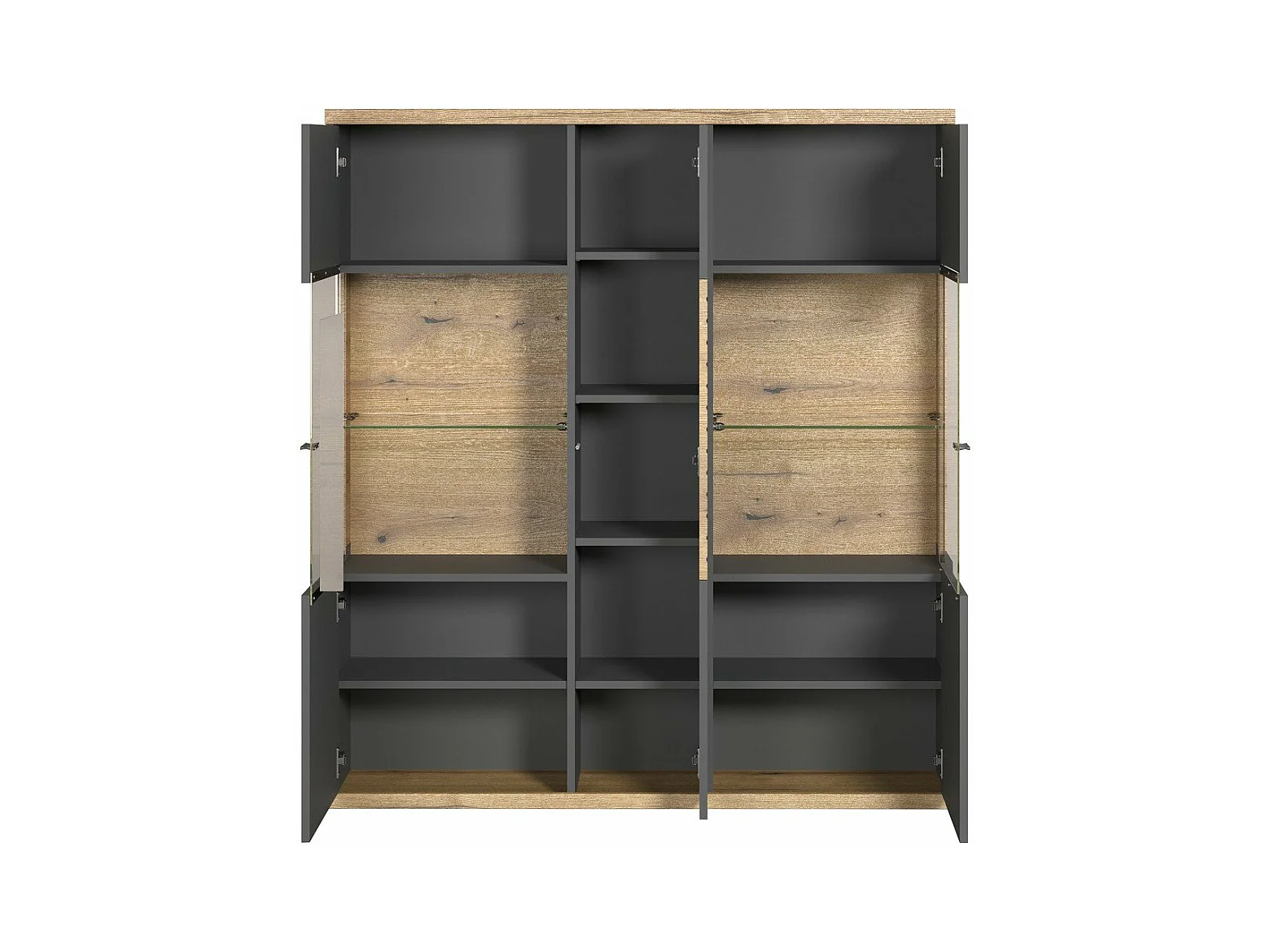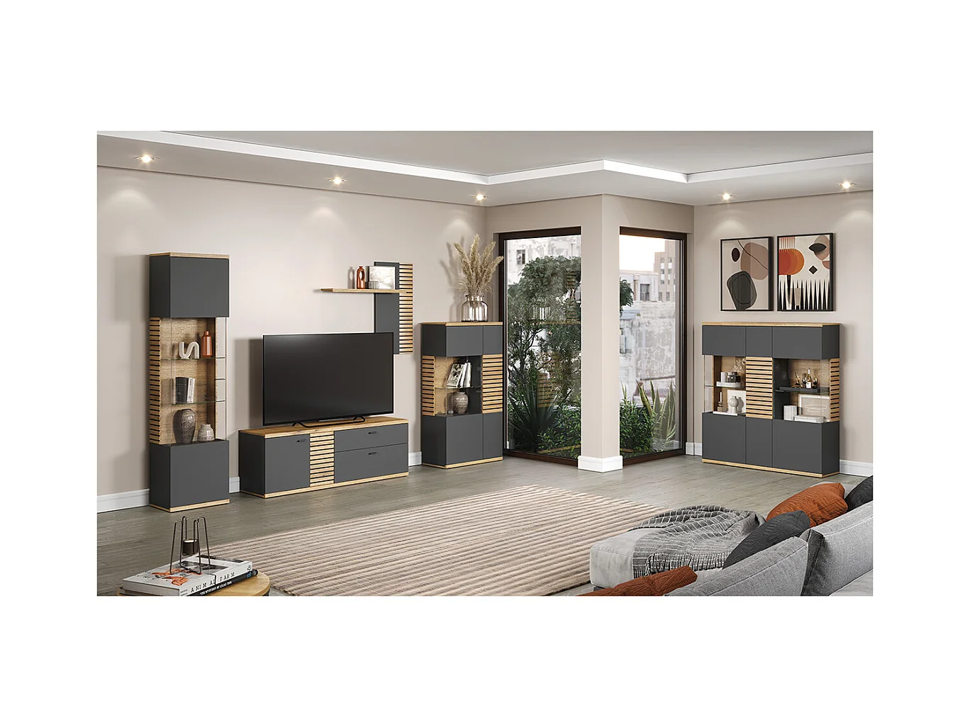 Groot buffet uit de collectie OHIO. Kleur antracietgrijs en eiken. Designstijl.