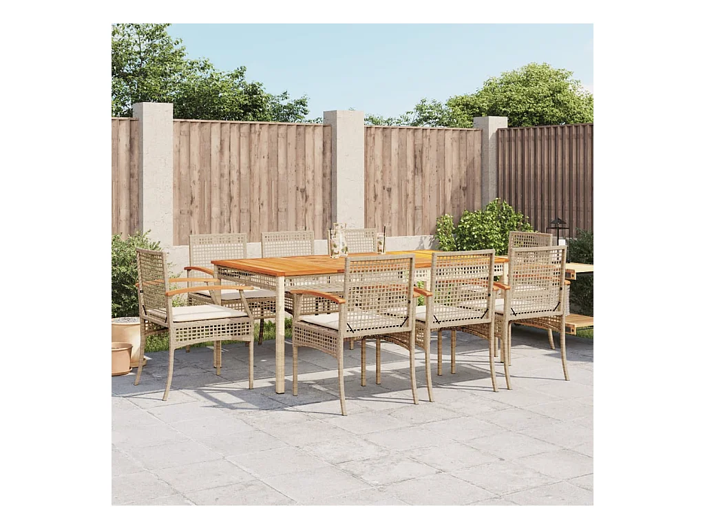 An Daingean 9-delige Tuinset met kussens poly rattan beige