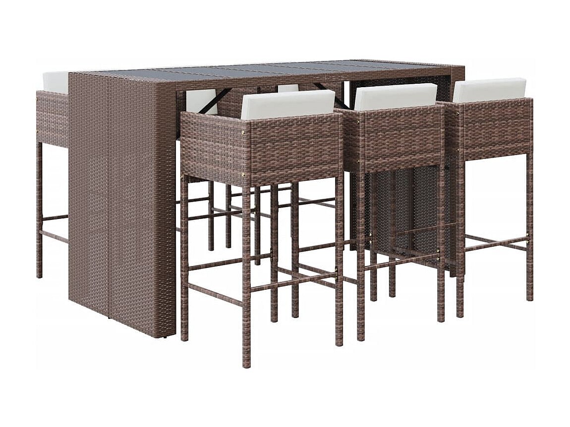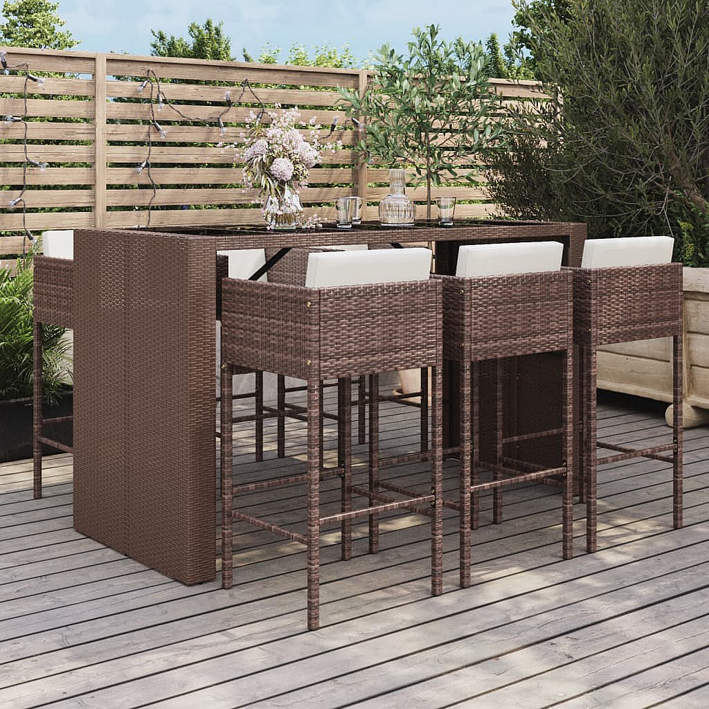 Laurent-Paul-Francis 7-delige Tuinbarset met kussens poly rattan bruin