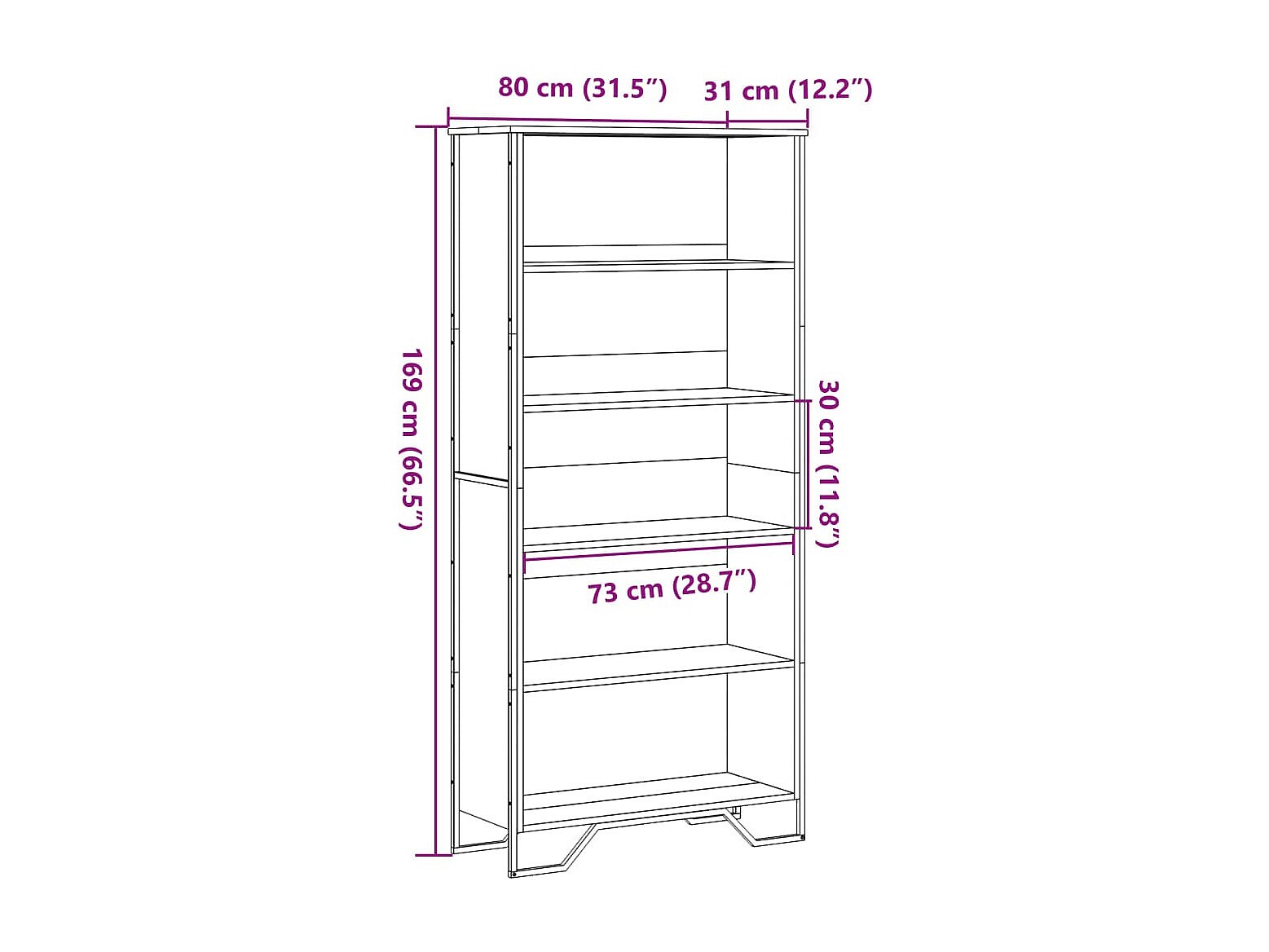 Olga Boekenkast 80x31x169 cm bewerkt hout zwart