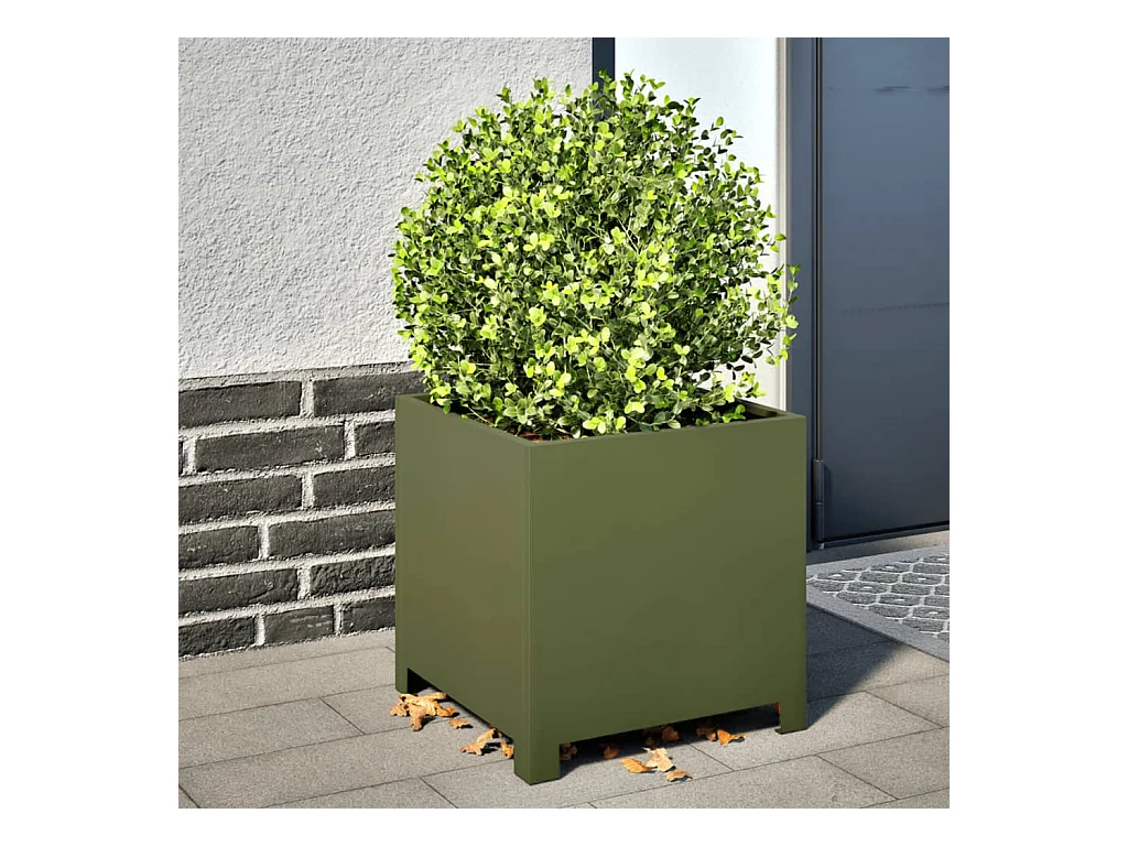 Olijfgroene plantenbak 40x40x40 cm staal