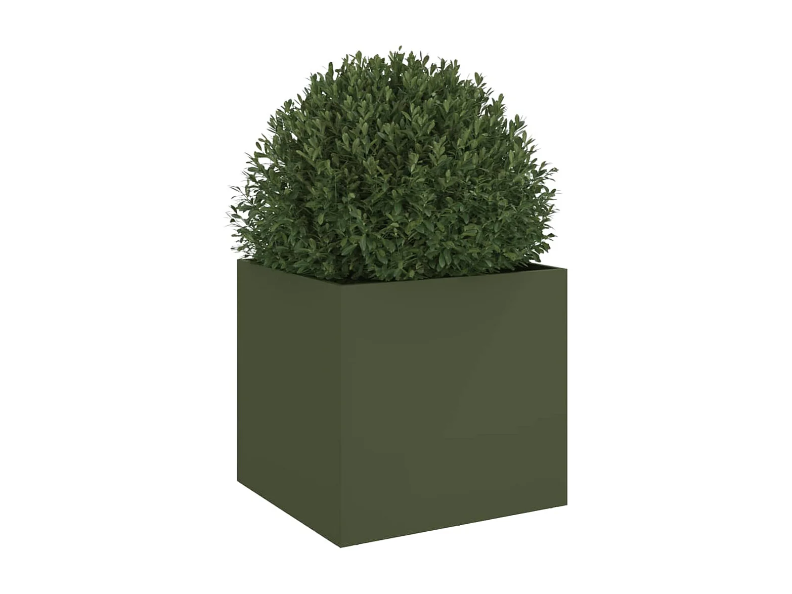 Plantenbakken 2 stuks olijfgroen 30x30x30 cm staal