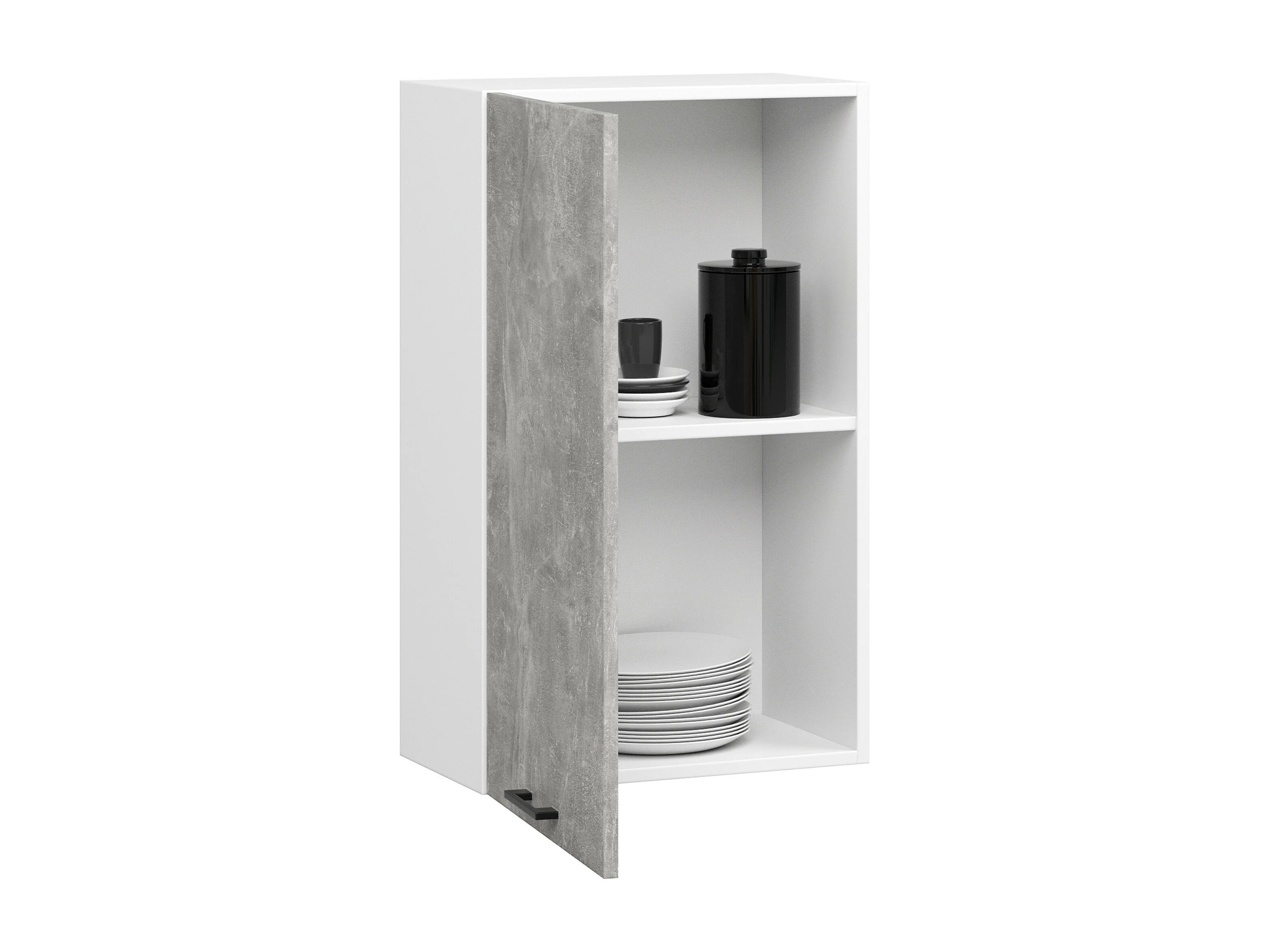 Keukenkast modulaire OLIWIA W40 met 1 Deur / Hangkast / Bovenkast / AKORD Furniture Factory / Wit – Beton Grijs / 40 x 72 x 30 cm