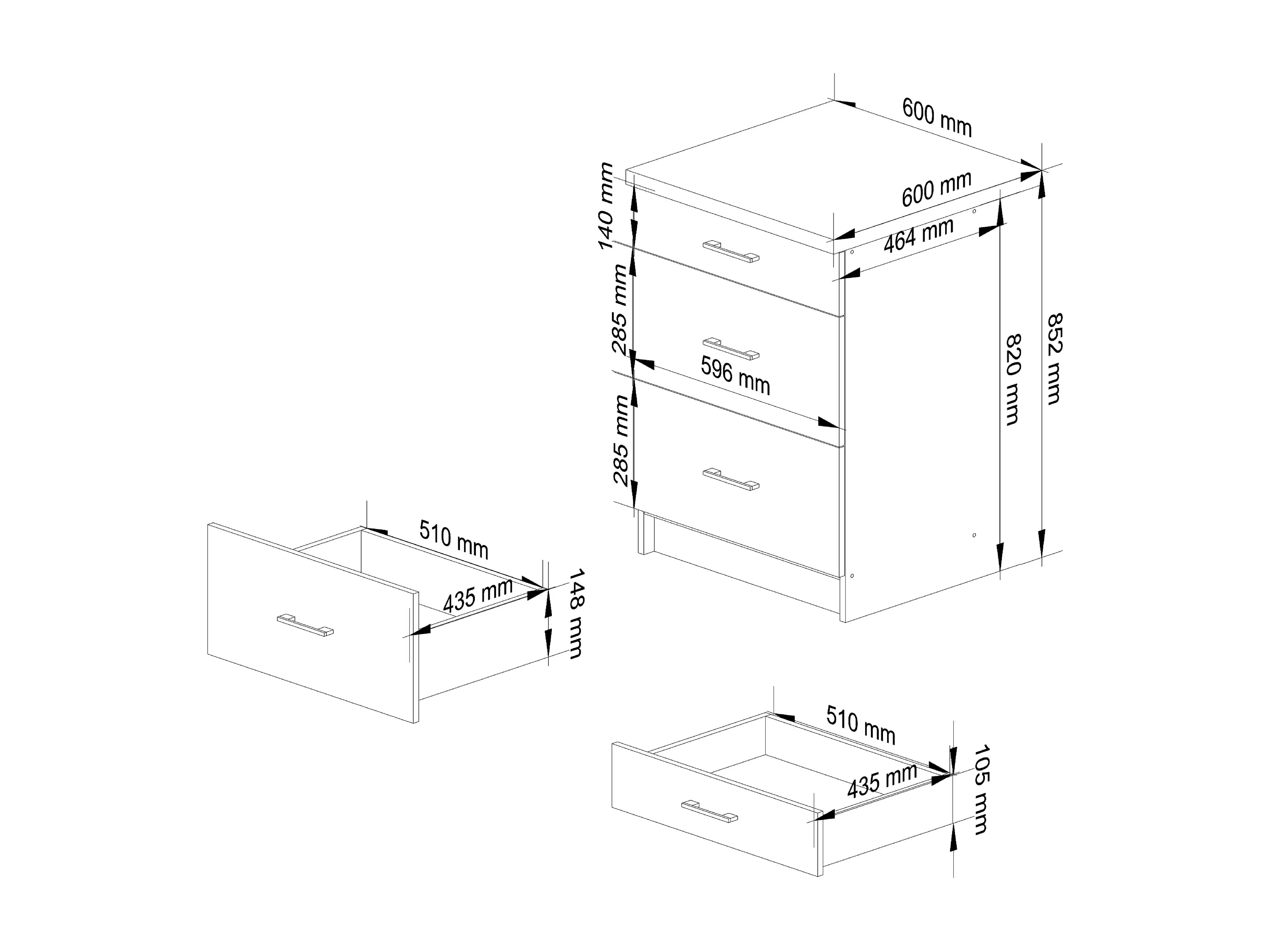 OLIWIA Staan Keukenkast 60cm Breed 3 Lades Hoogglans Wit Metalen Front Zelfmontage