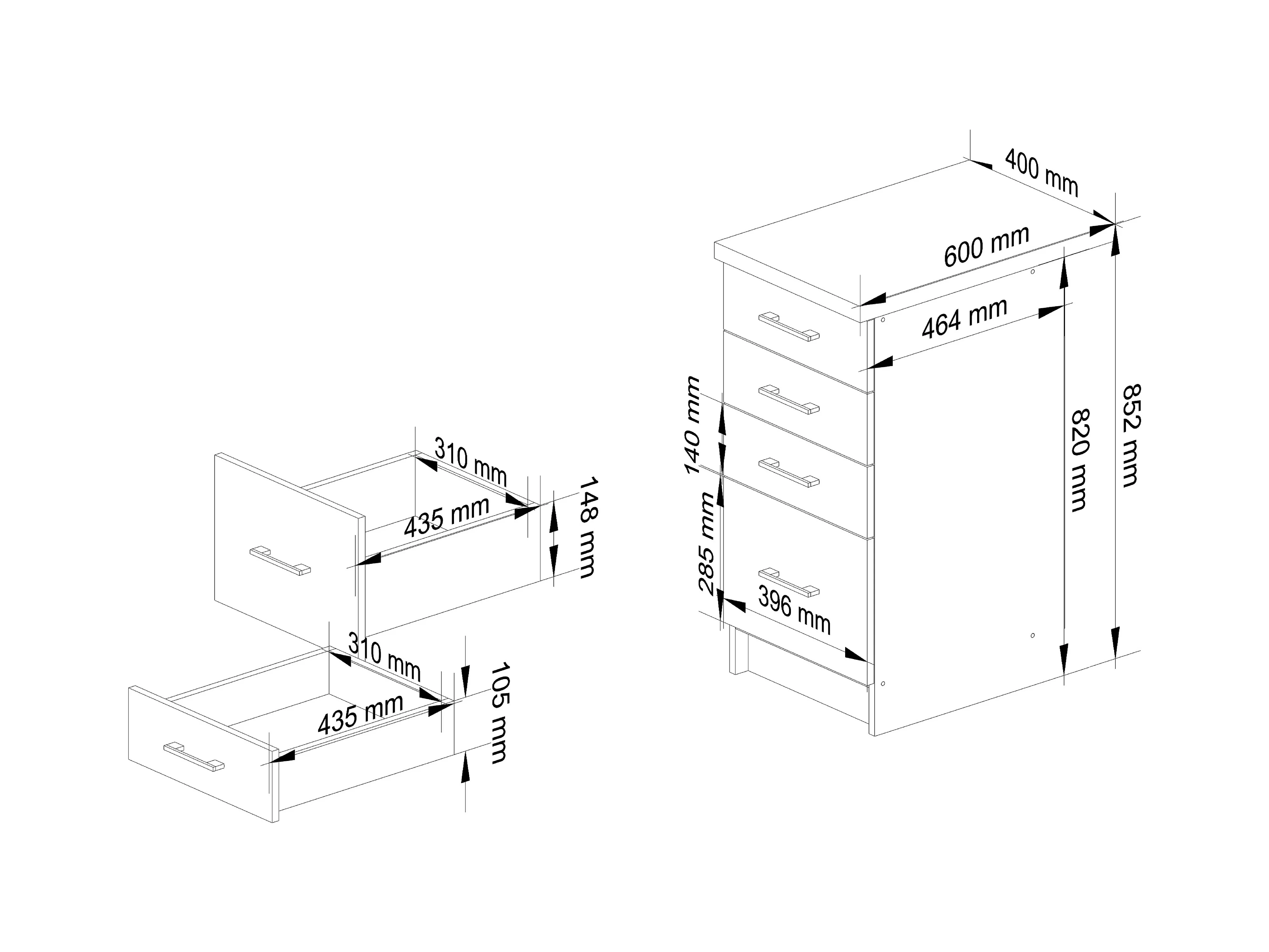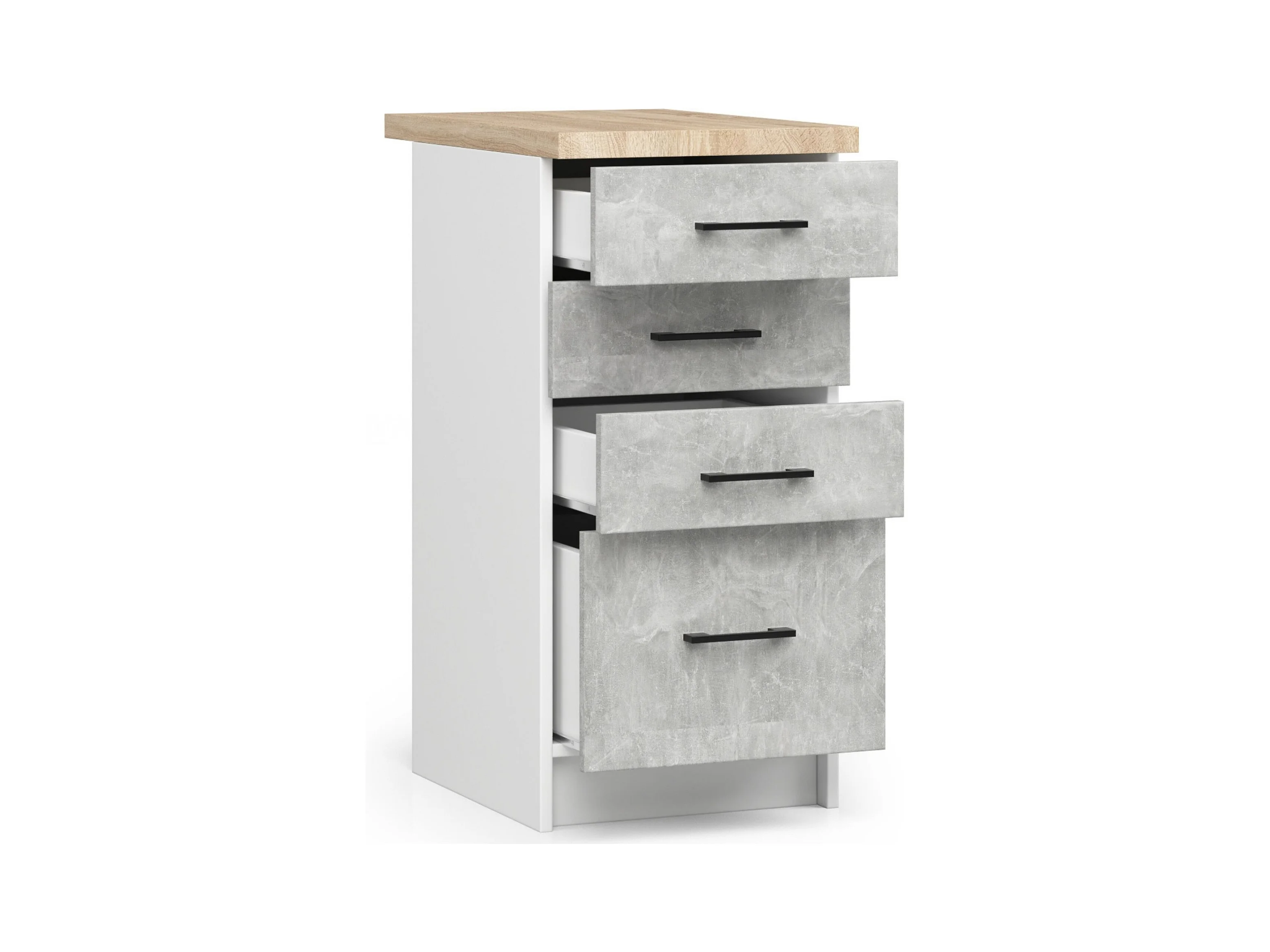 Oliwia Staande Kast S40 4 Lades Beton/Wit met Blad, 40cm Breed, Mat afwerking
