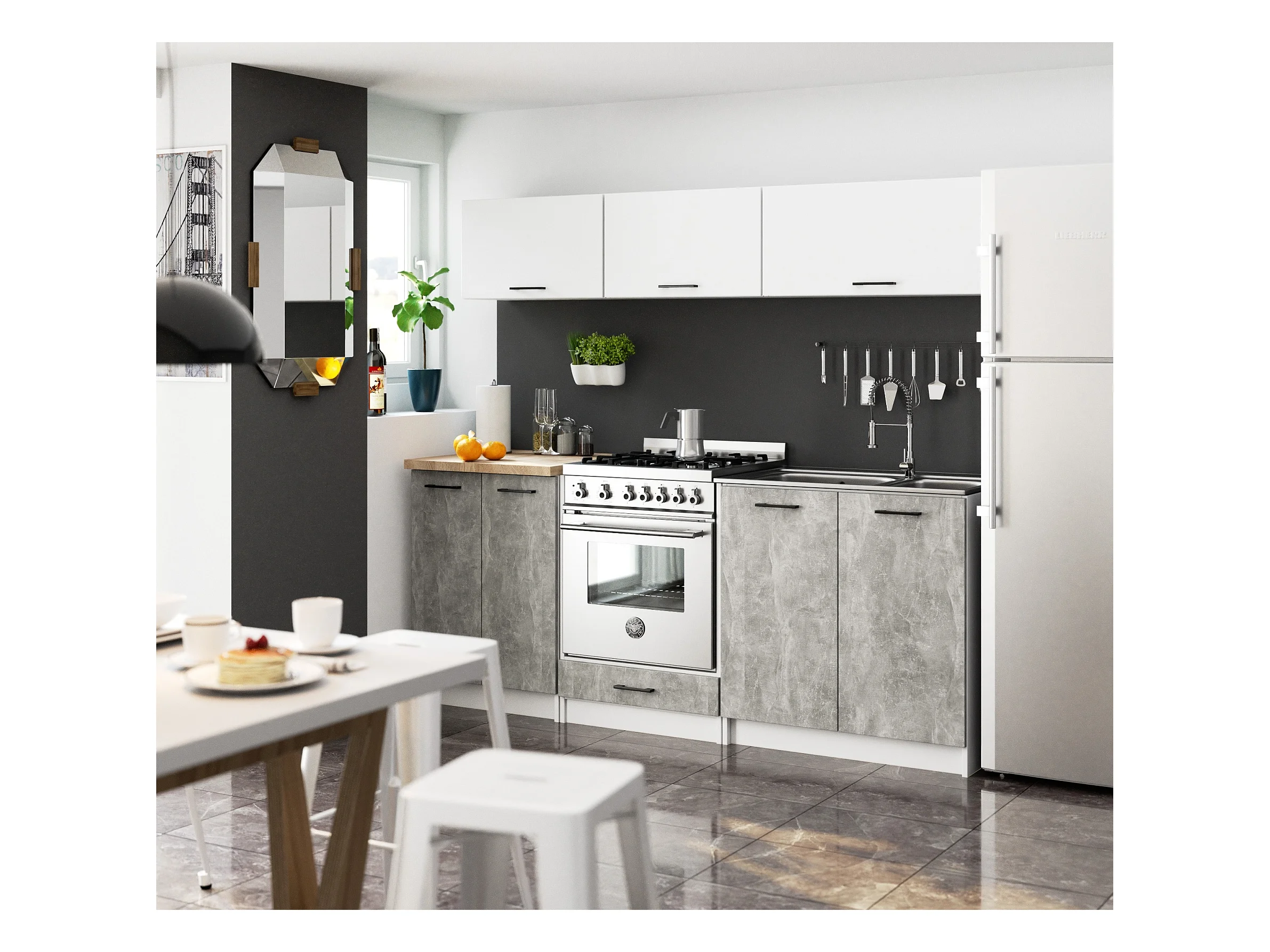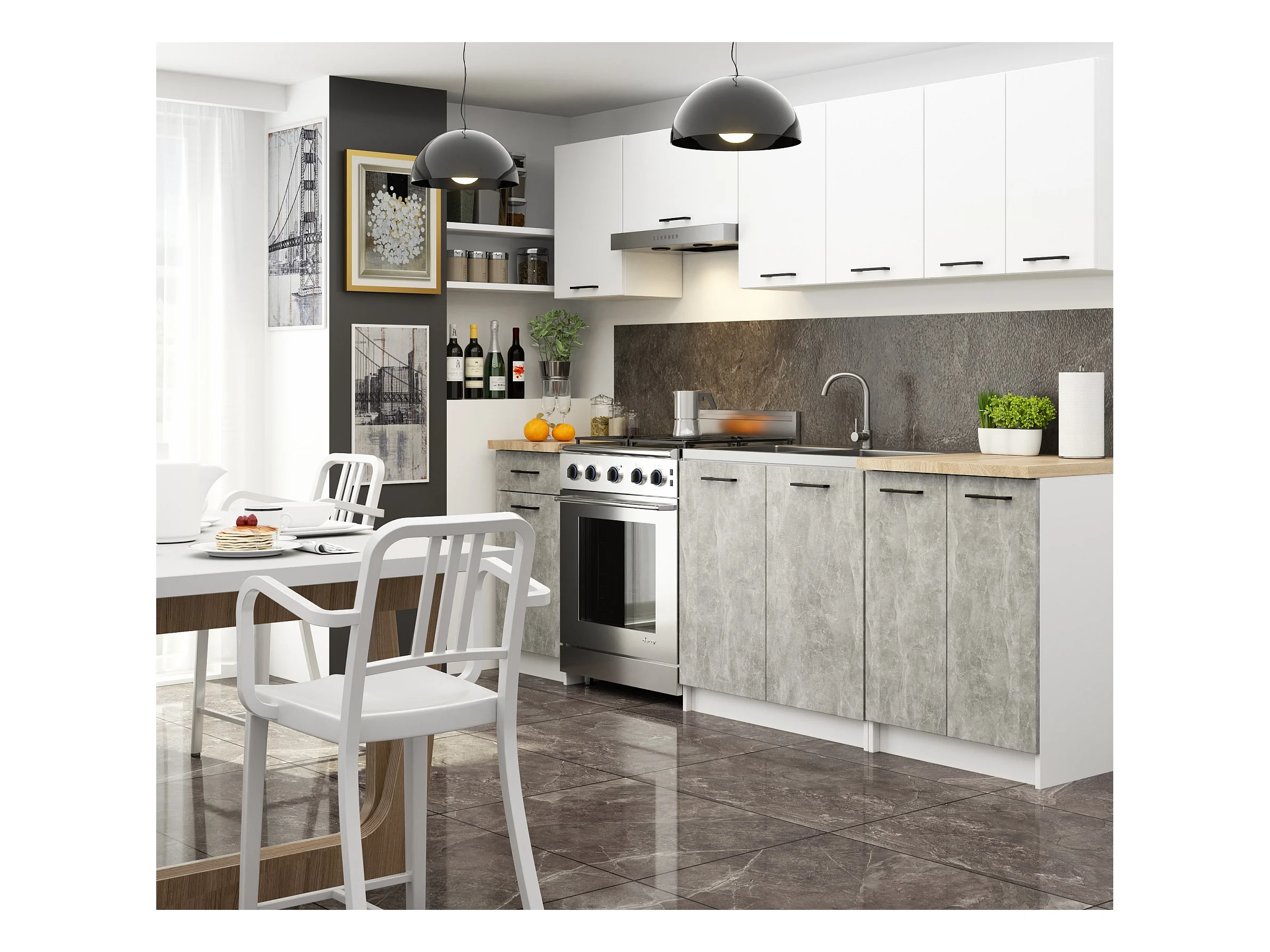 Oliwia Keukenkast 60 cm met Blad, Wit/Beton, Zelfmontage, 2 Deuren & 2 Planken