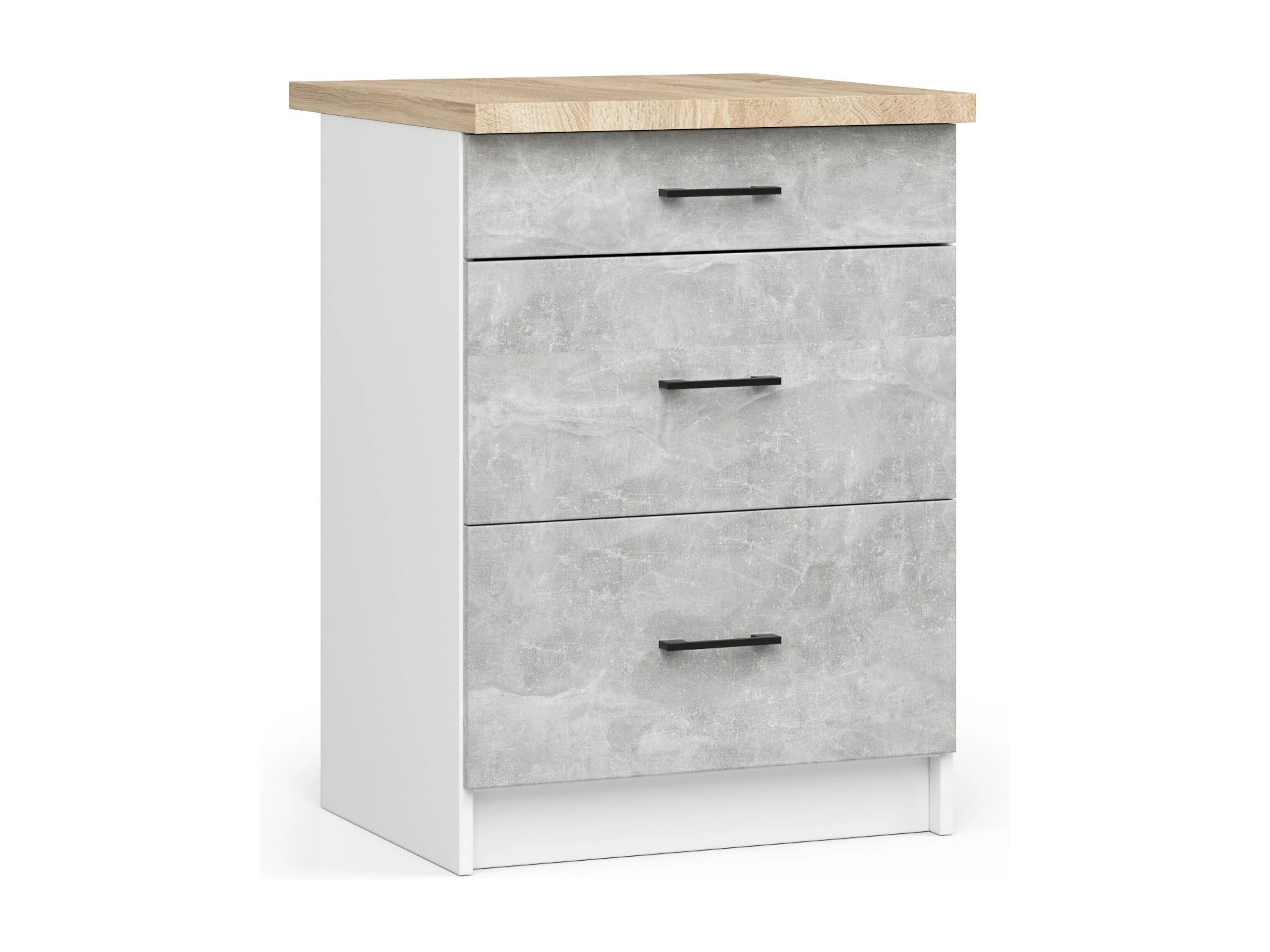 Keukenkast modulaire OLIWIA S60 met Verkblad / Onderkast met 3 Lades / AKORD Furniture Factory / Wit – Beton Grijs / 60 x 85 x 46 cm