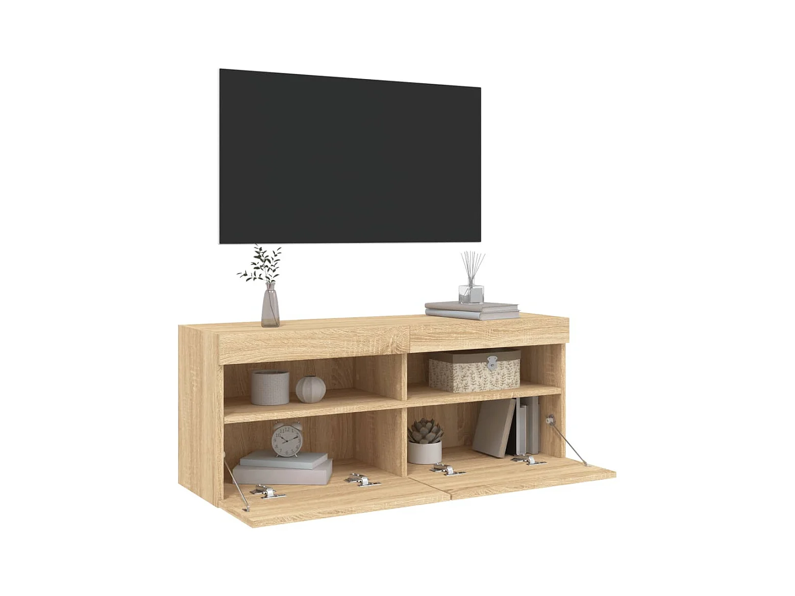 Ølstykke Tv-wandmeubel met LED-verlichting 100x30x40 cm sonoma eiken
