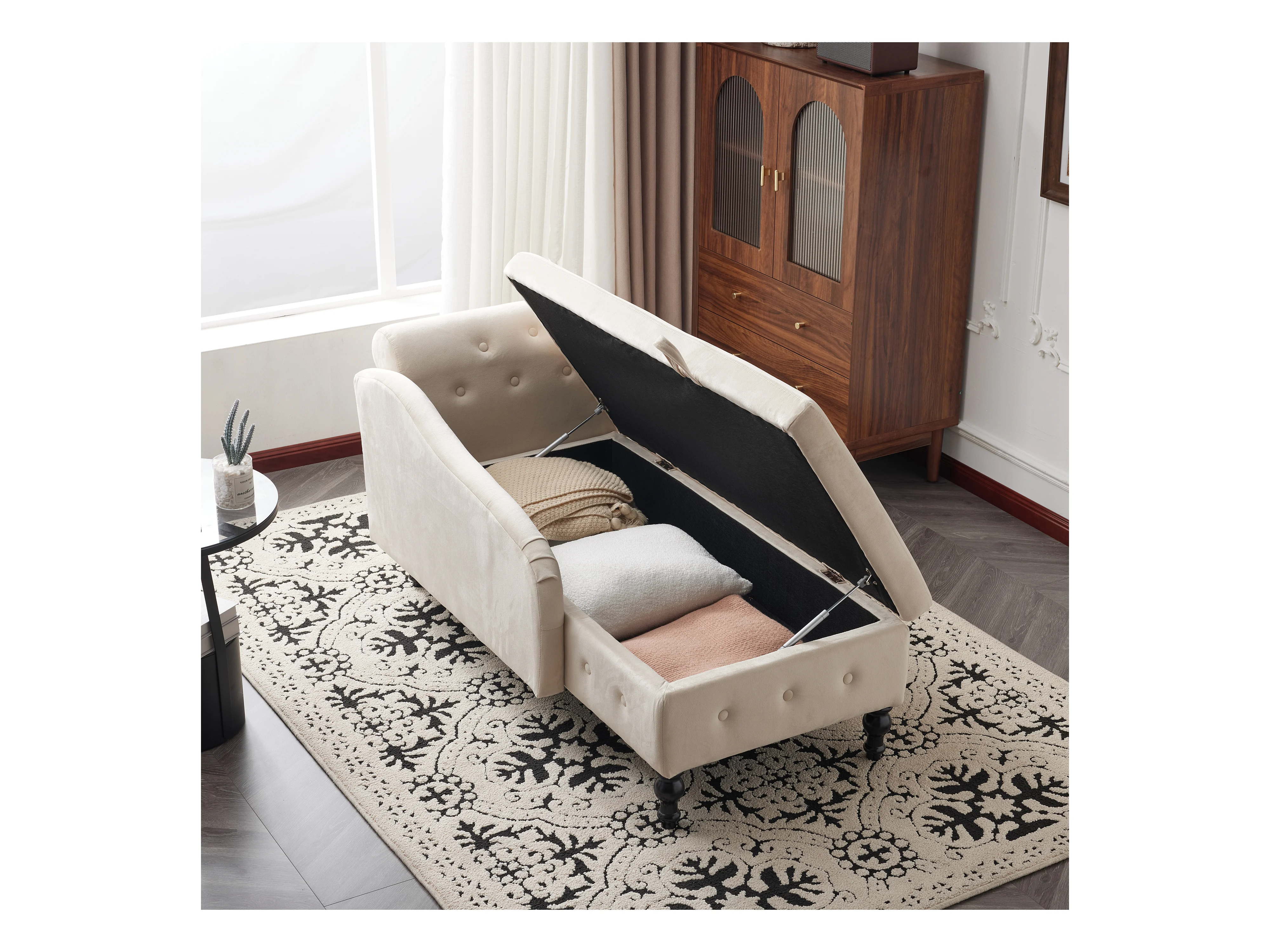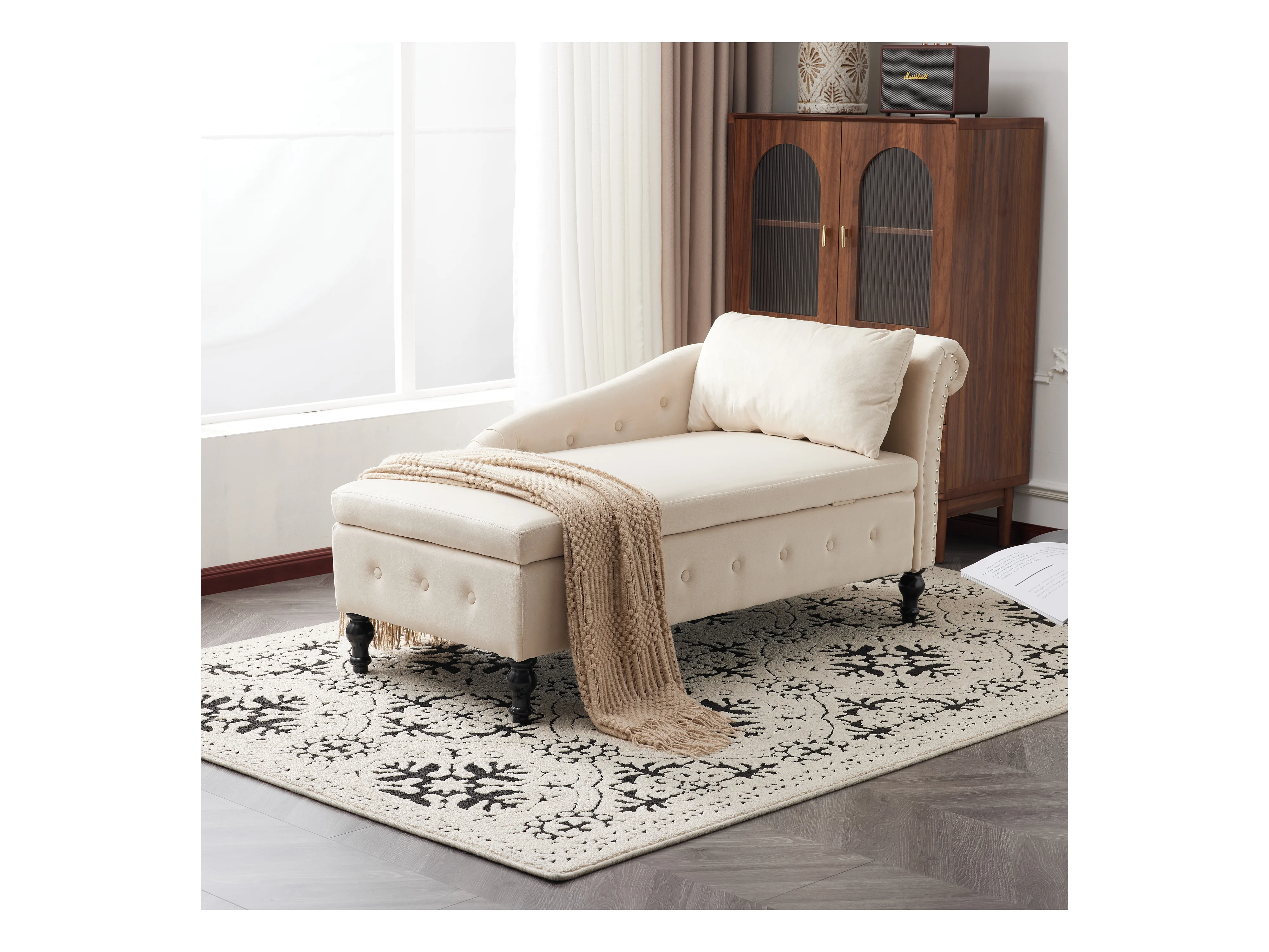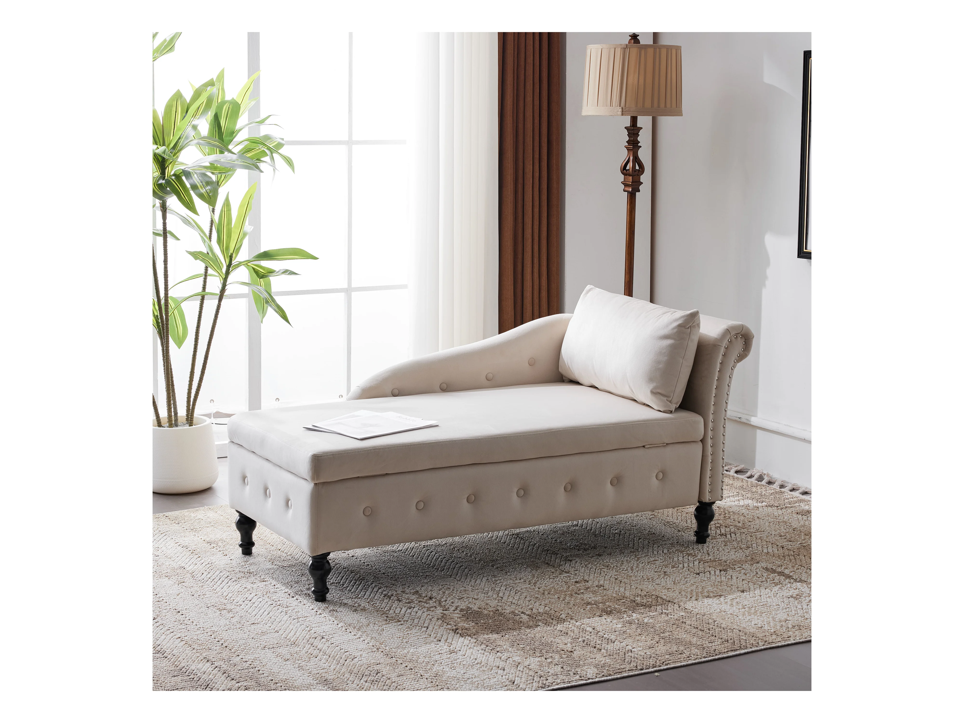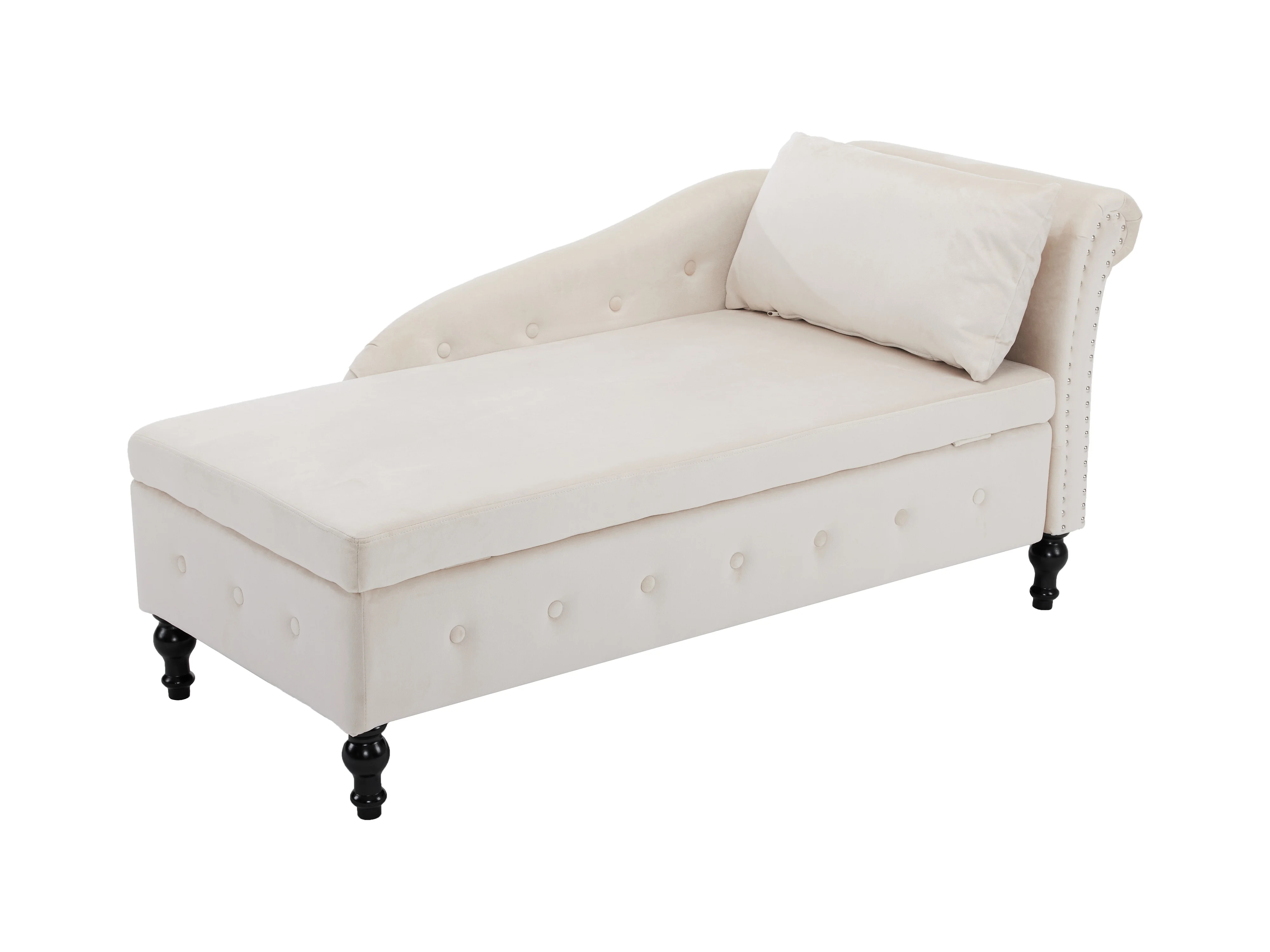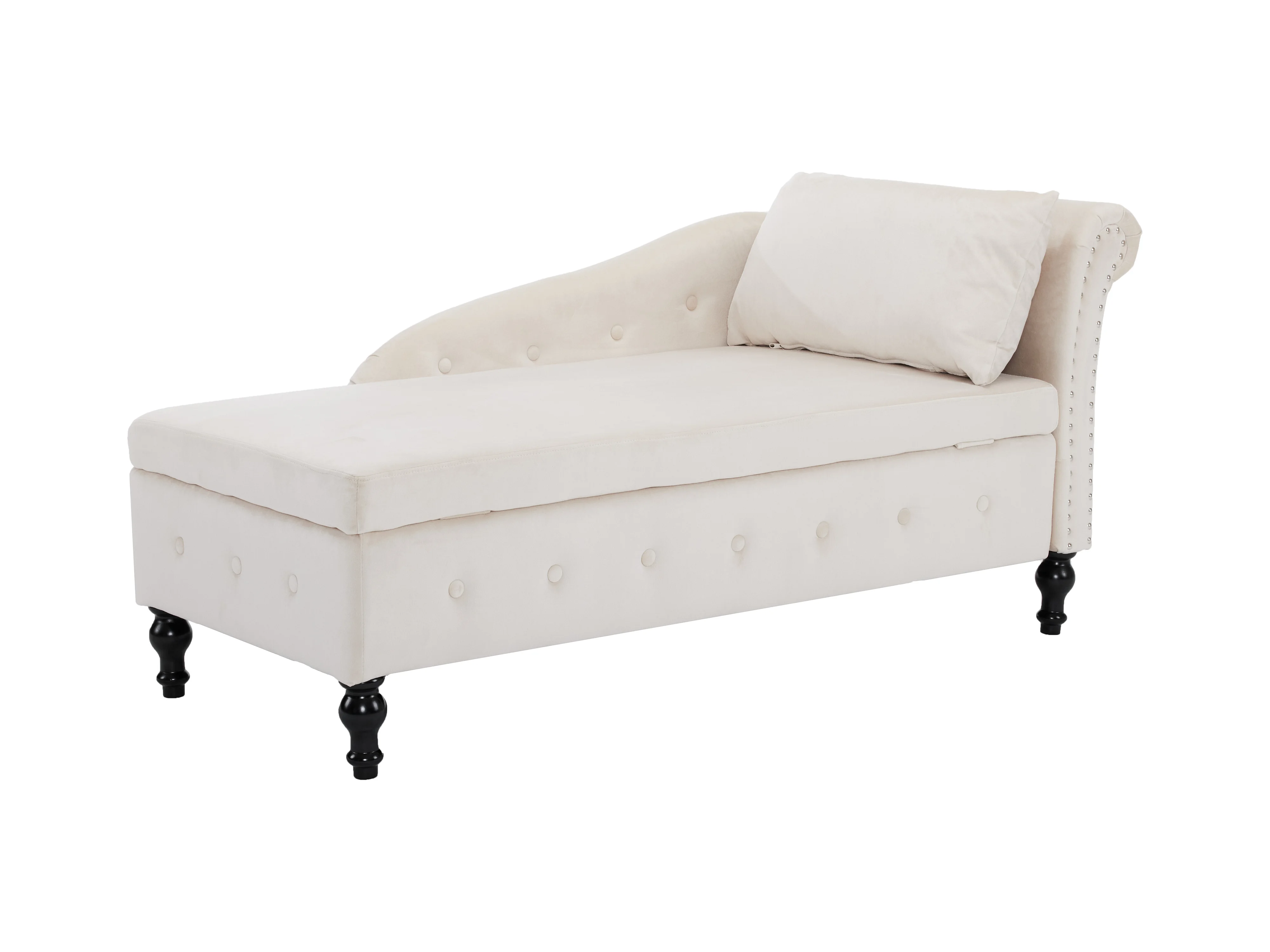 Ombouwbaar linker daybed in fluweel met opbergdoos - 144 x 62 x 69 cm - Wit