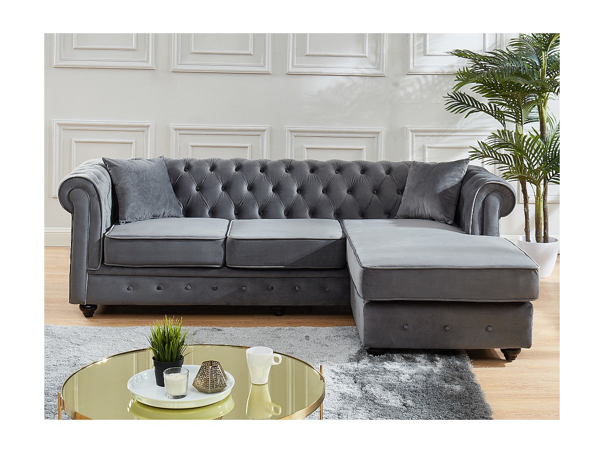 Omkeerbare chesterfield-hoekbank TOLEDO van fluweel - Antraciet