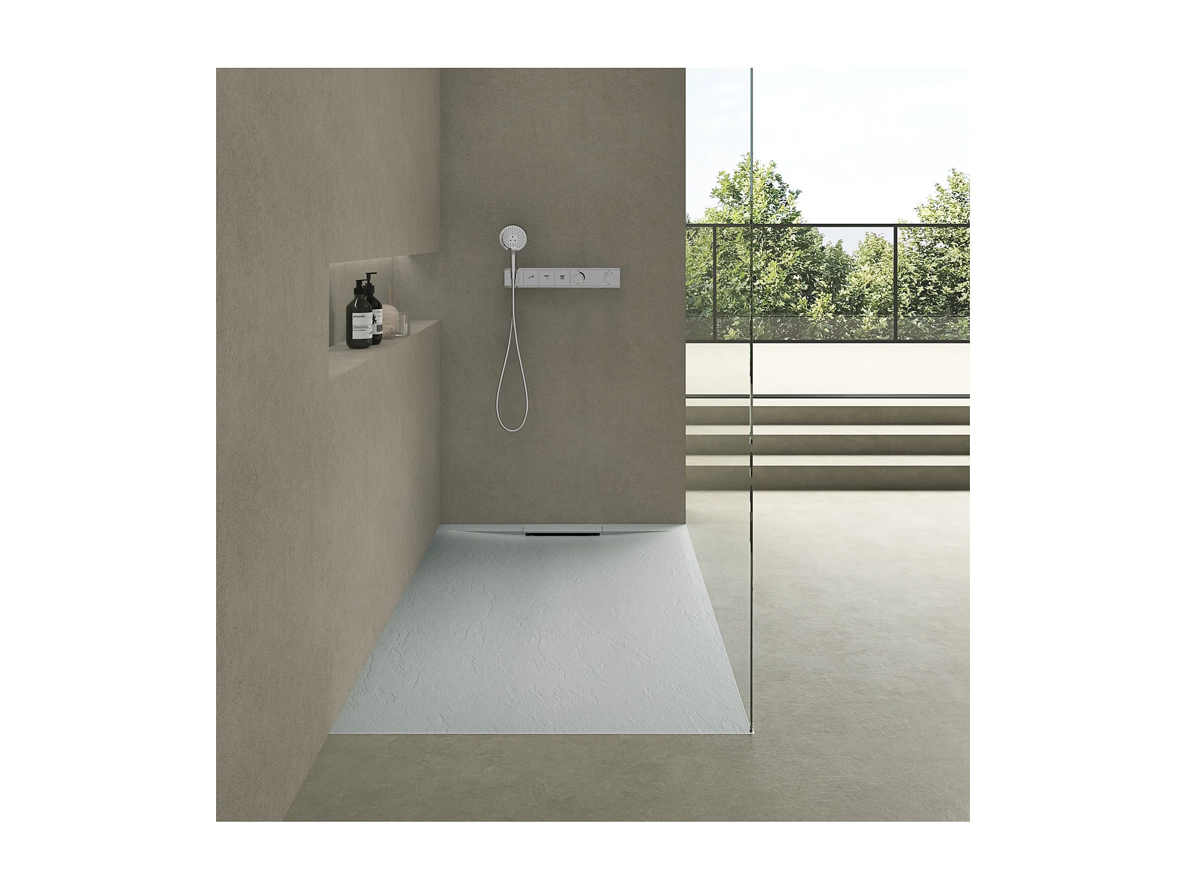ONA extra vlakke douchebak in lichtgrijze steenlook 140x90