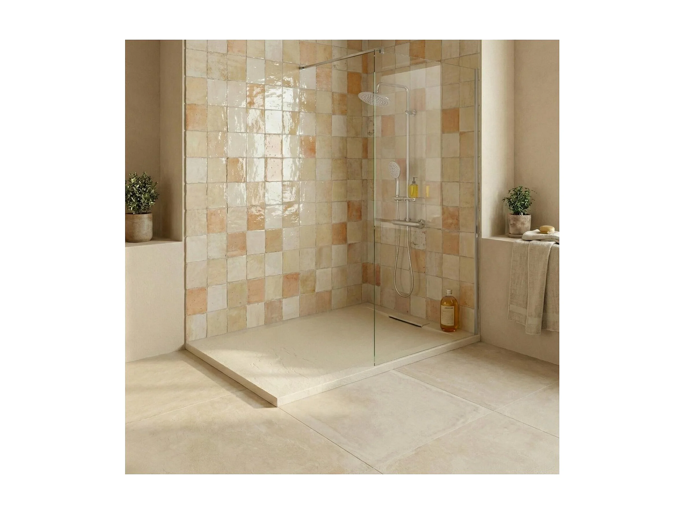 ONA extra vlakke douchebak met zandkleurige leisteenlook 90x90