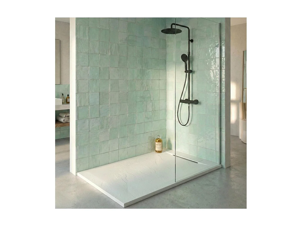 ONA extra vlakke witte douchebak met steenlook 100x80