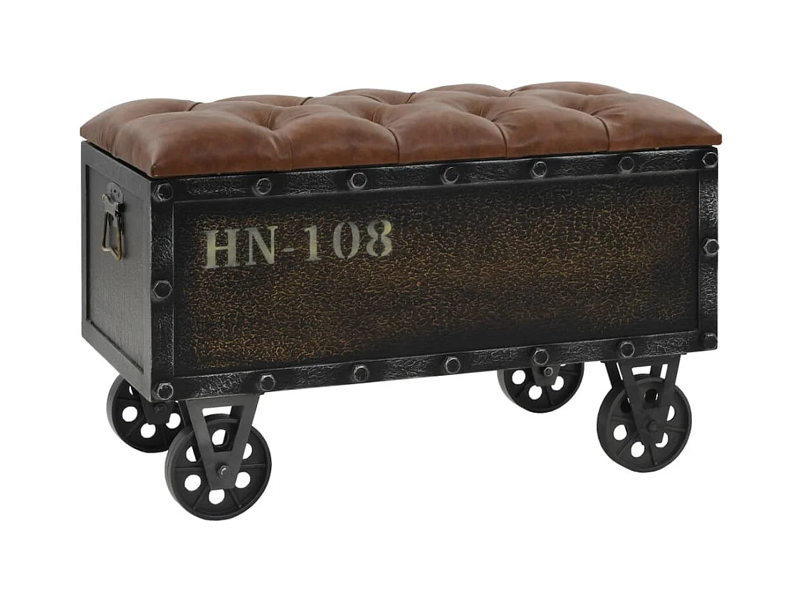 Opbergbank Massief hout en imitatieleer 80,5x41x50 cm