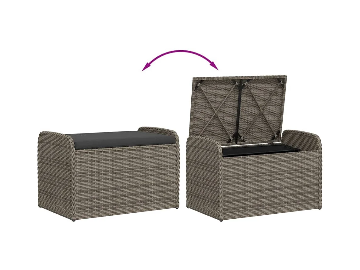 Opbergbank met grijs kussen 80x51x52 cm geweven hars