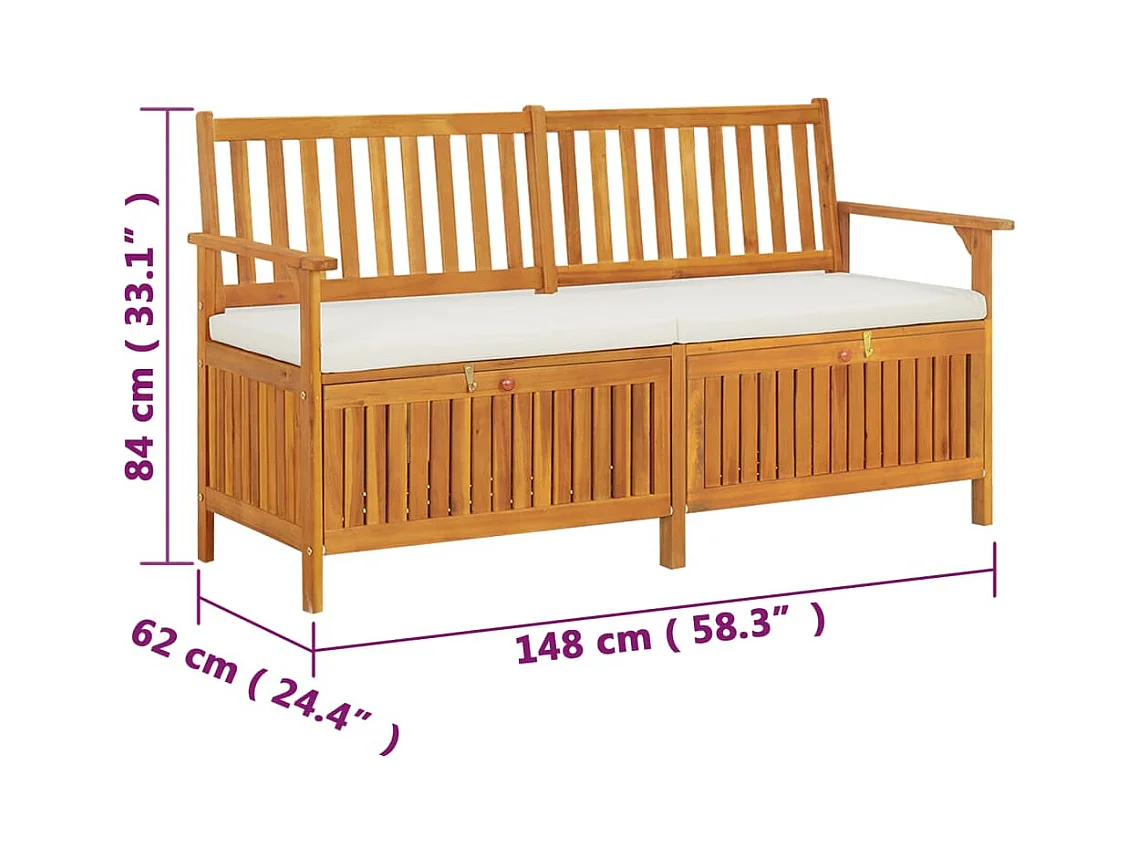 Opbergbank met kussen 148 cm Massief acaciahout