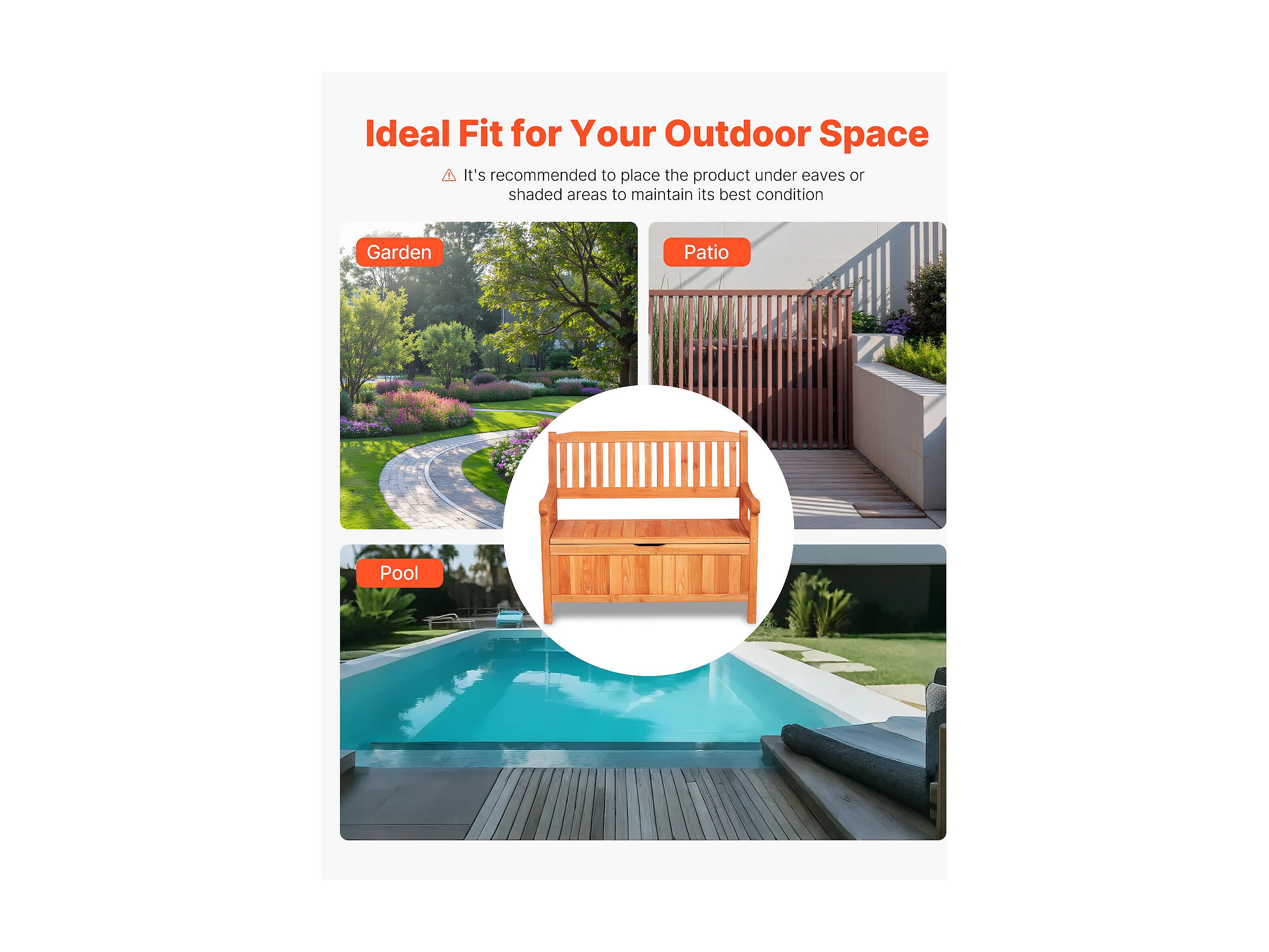 Opbergbank SucceBuy Buiten van Hout Tuinkist 125 L Terrasbank 2 in 1 met Zijhandgreep, Draagvermogen 319,8 kg