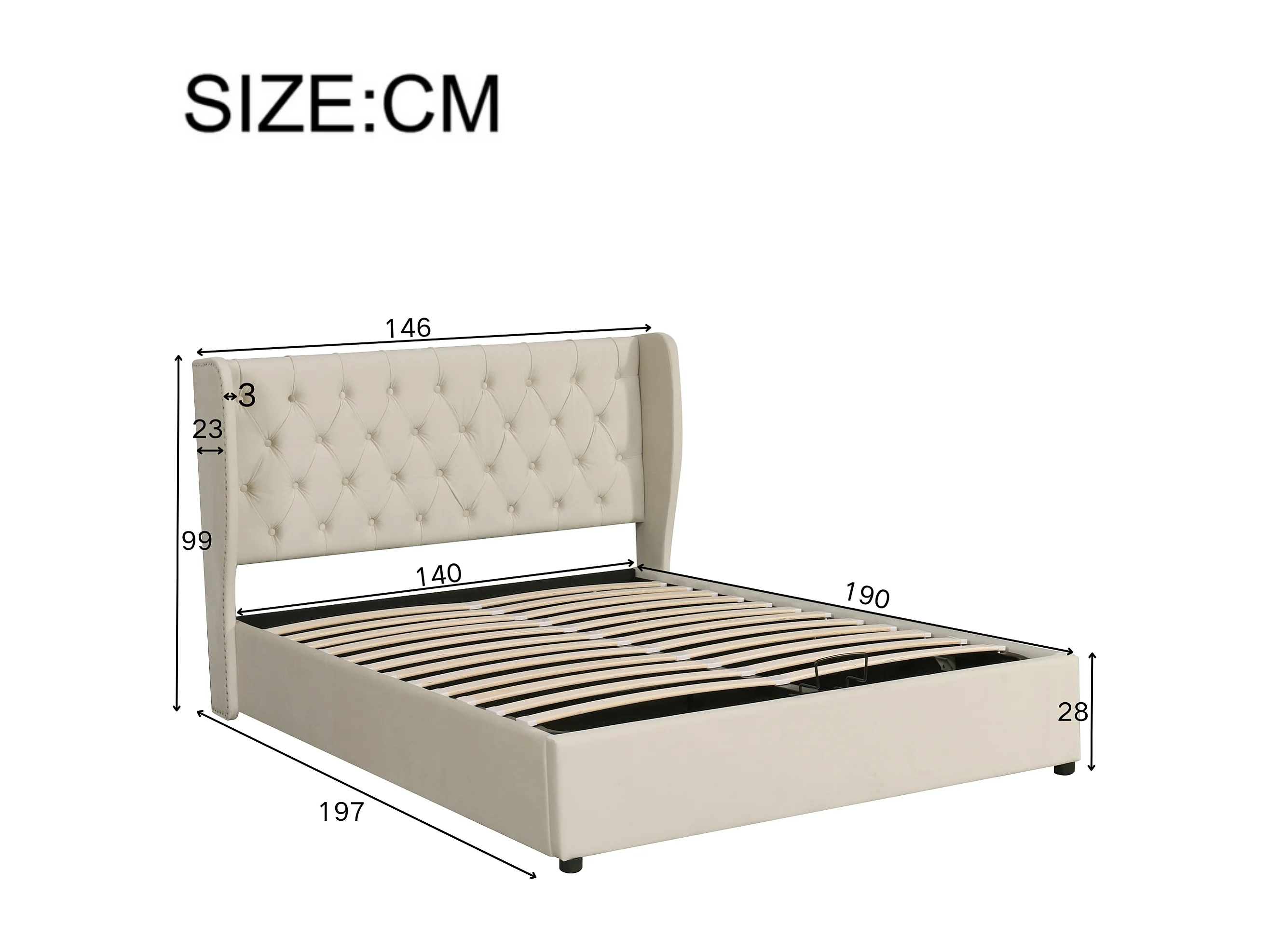 Opbergbed 140 x 190 cm met hoofdeinde - fluweel - oorvorm - lattenbodem - beige