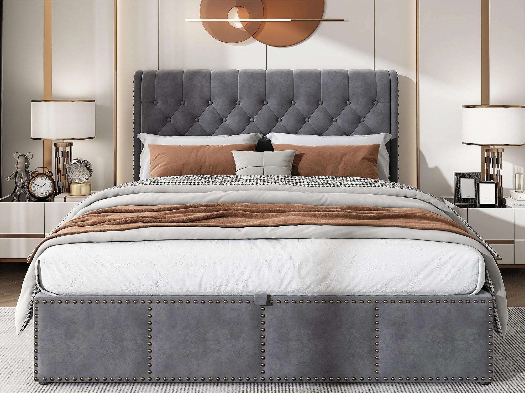 Opbergbed 140 x 200 cm met hoofdeinde - stof - lattenbodem - kleur grijs