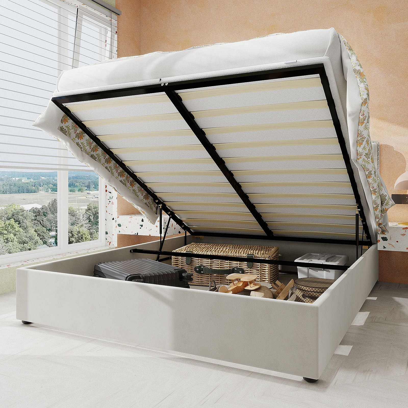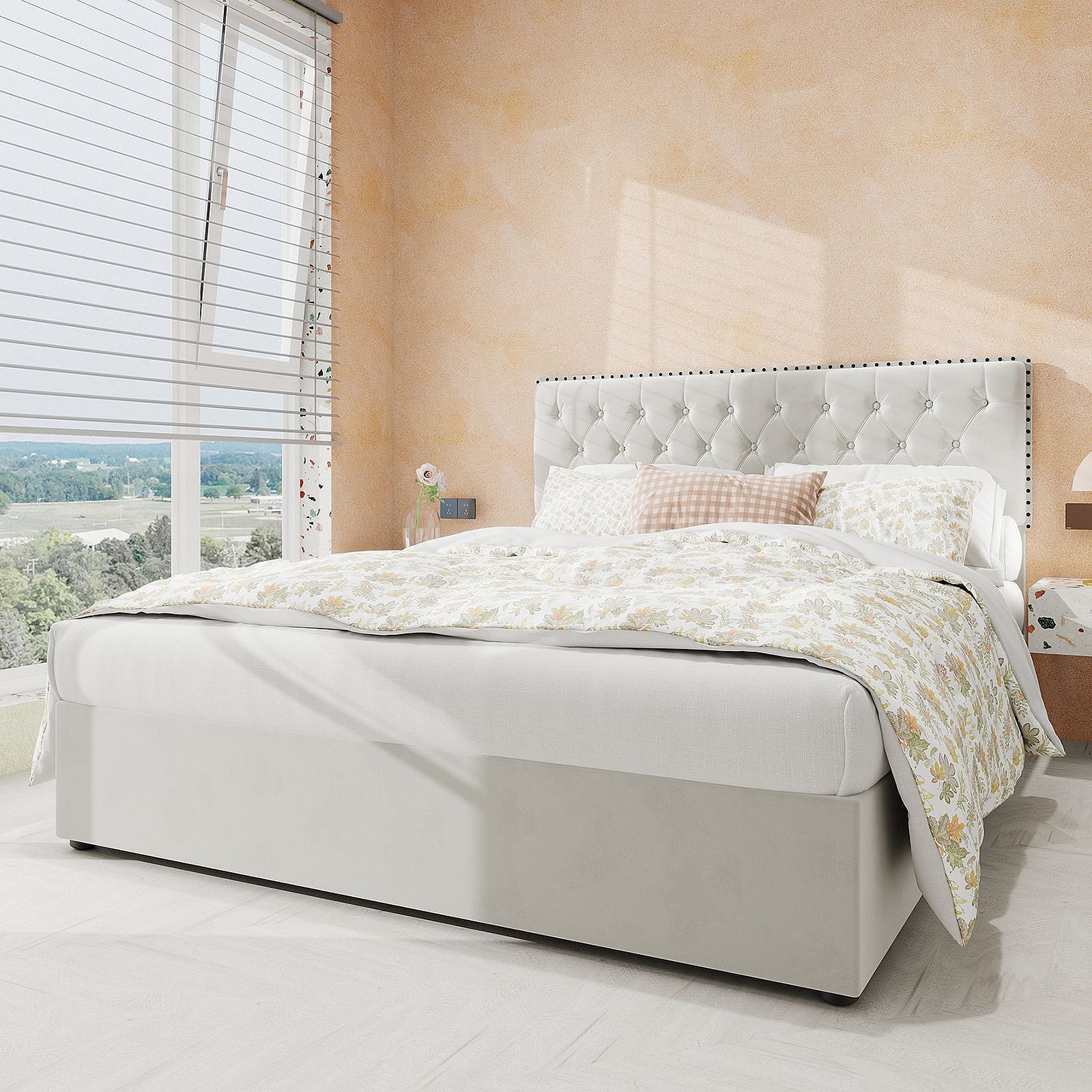 Opbergbed 140x200 cm in beige fluweel – Verstelbaar hoofdbord en lattenbodem (zonder matras)