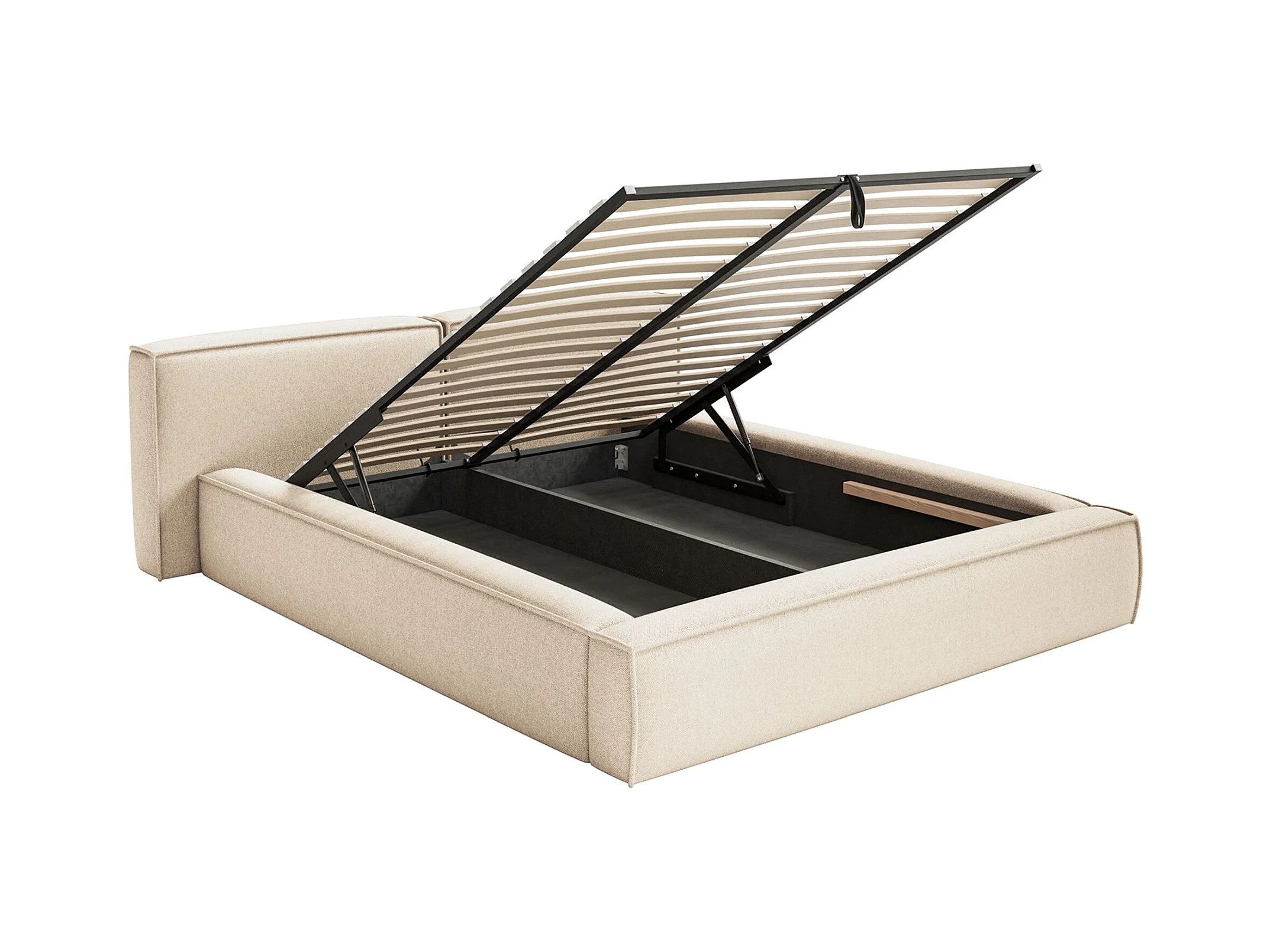 Opbergbed - 140x200 cm - in crèmekleurige badstof - BAURO