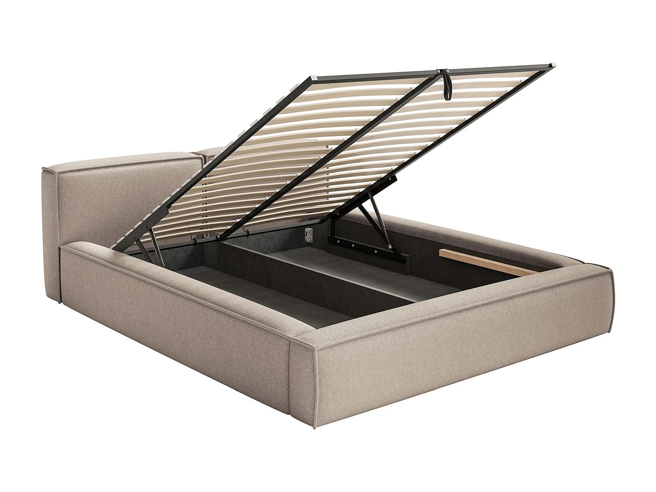 Opbergbed - 160x200 cm - in beige geweven stof - ASMELIO