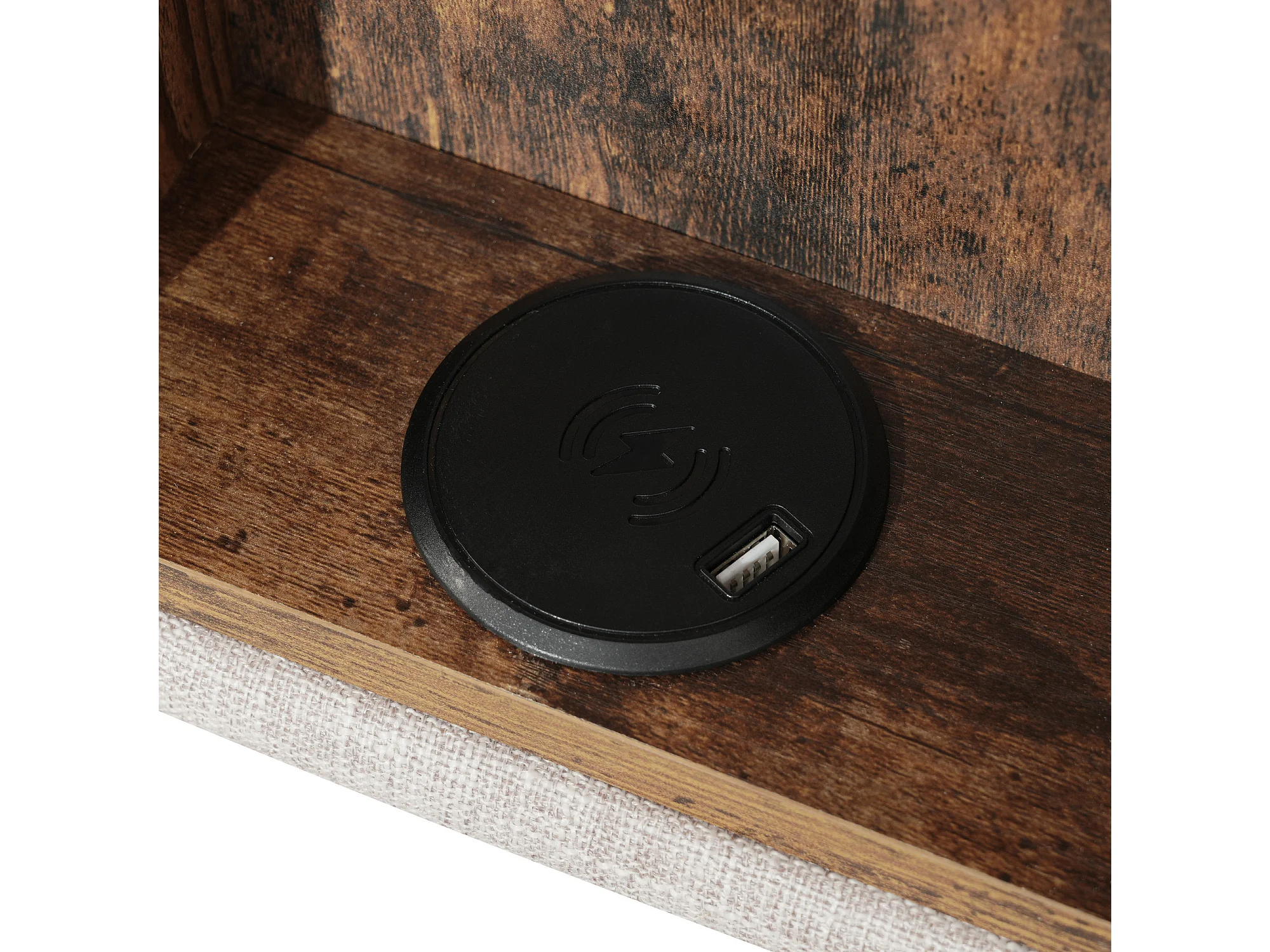 Opbergbed 160x200 cm, volwassen bed met USB-poort en draadloos opladen, lattenbodem - natuurlijk linnen (zonder matras)