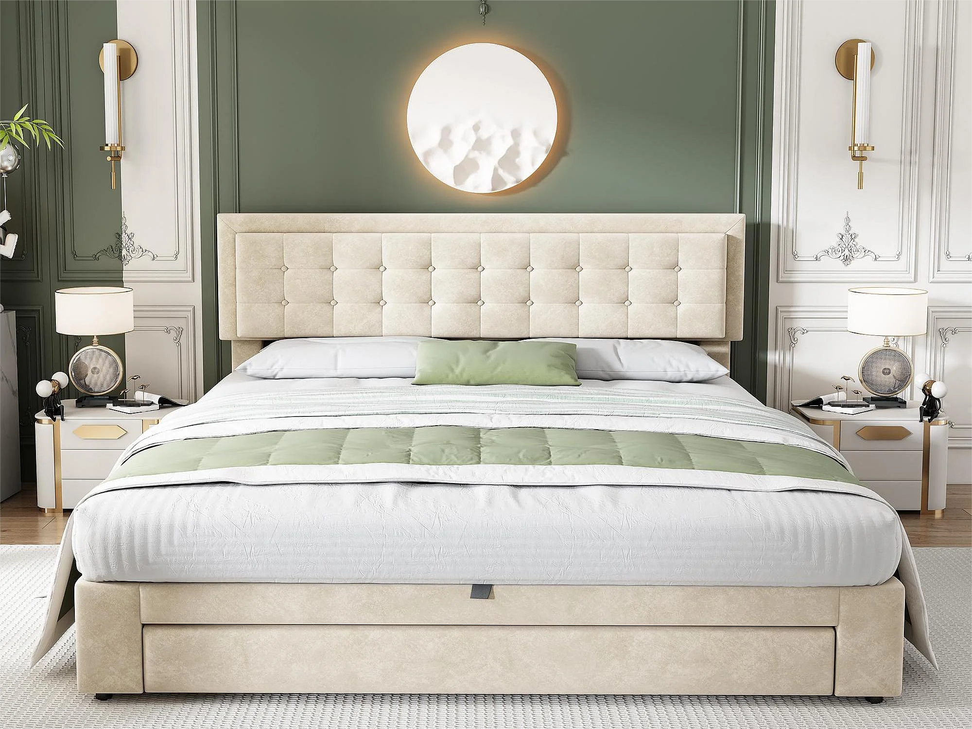 Opbergbed 180 x 200 cm met opberglade - fluweel - lattenbodem - beige kleur