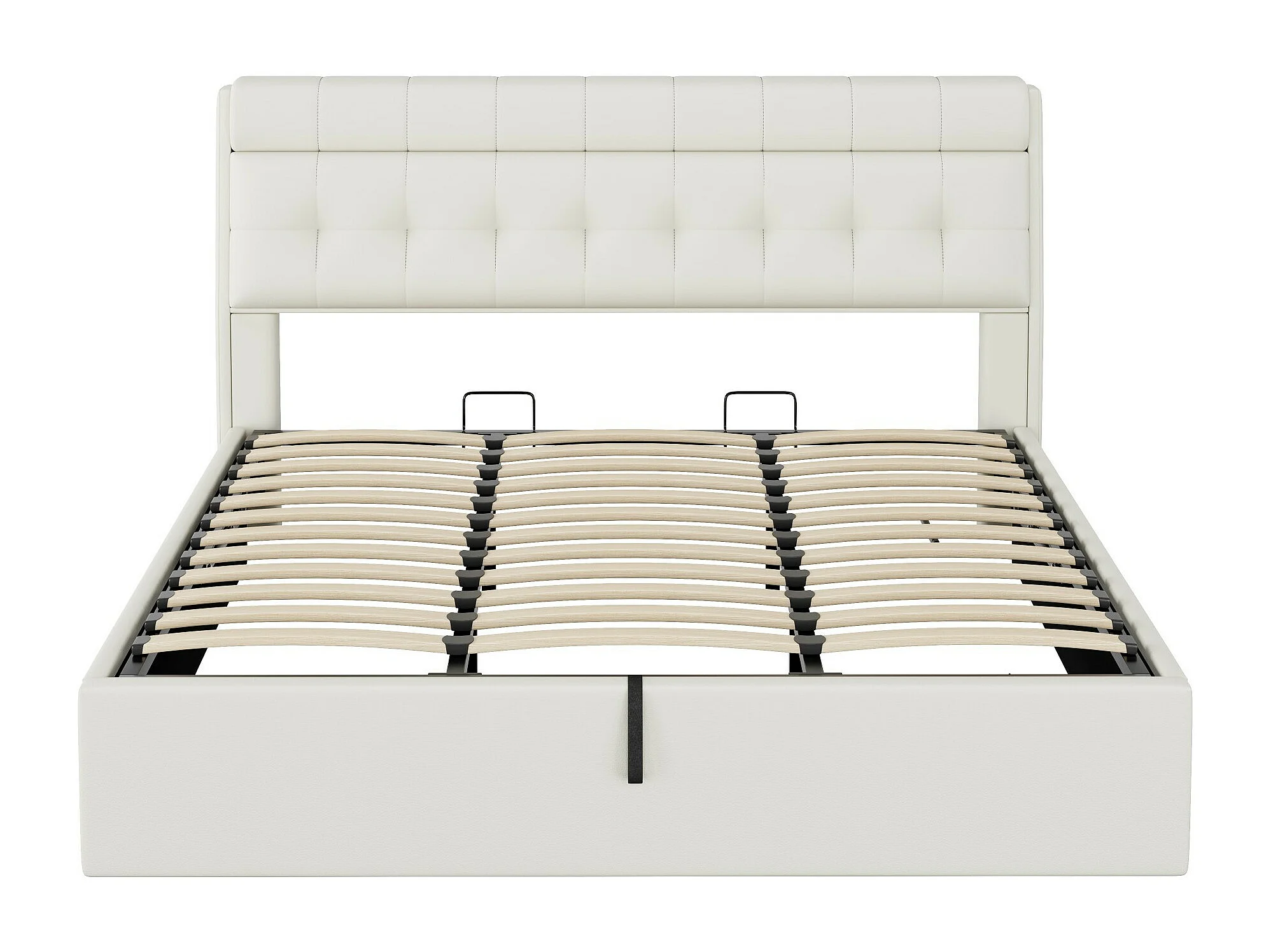 Opbergbed 180x200 cm - volwassen bed met lattenbodem en opberghoofdeinde - PU - wit - zonder matras