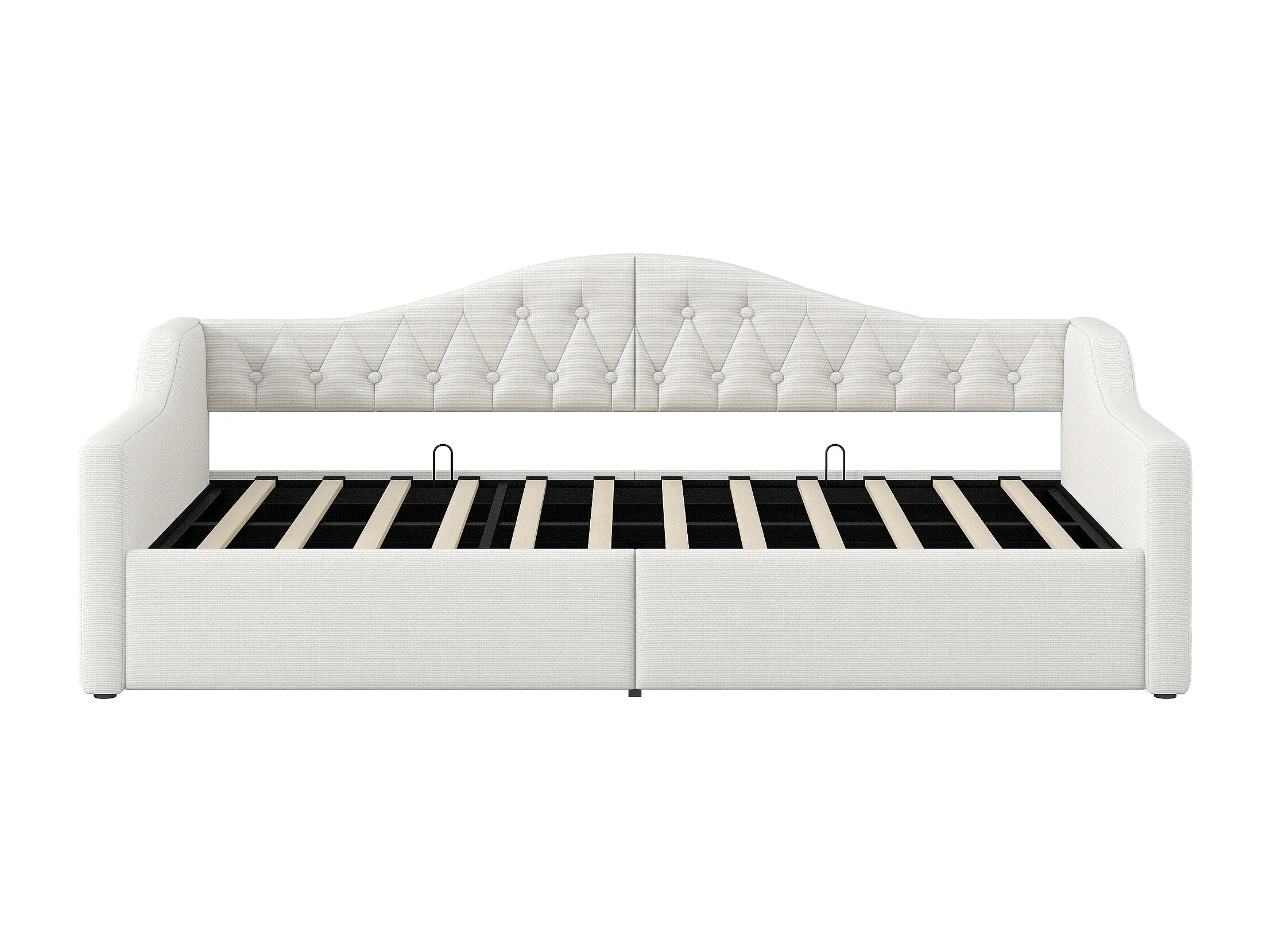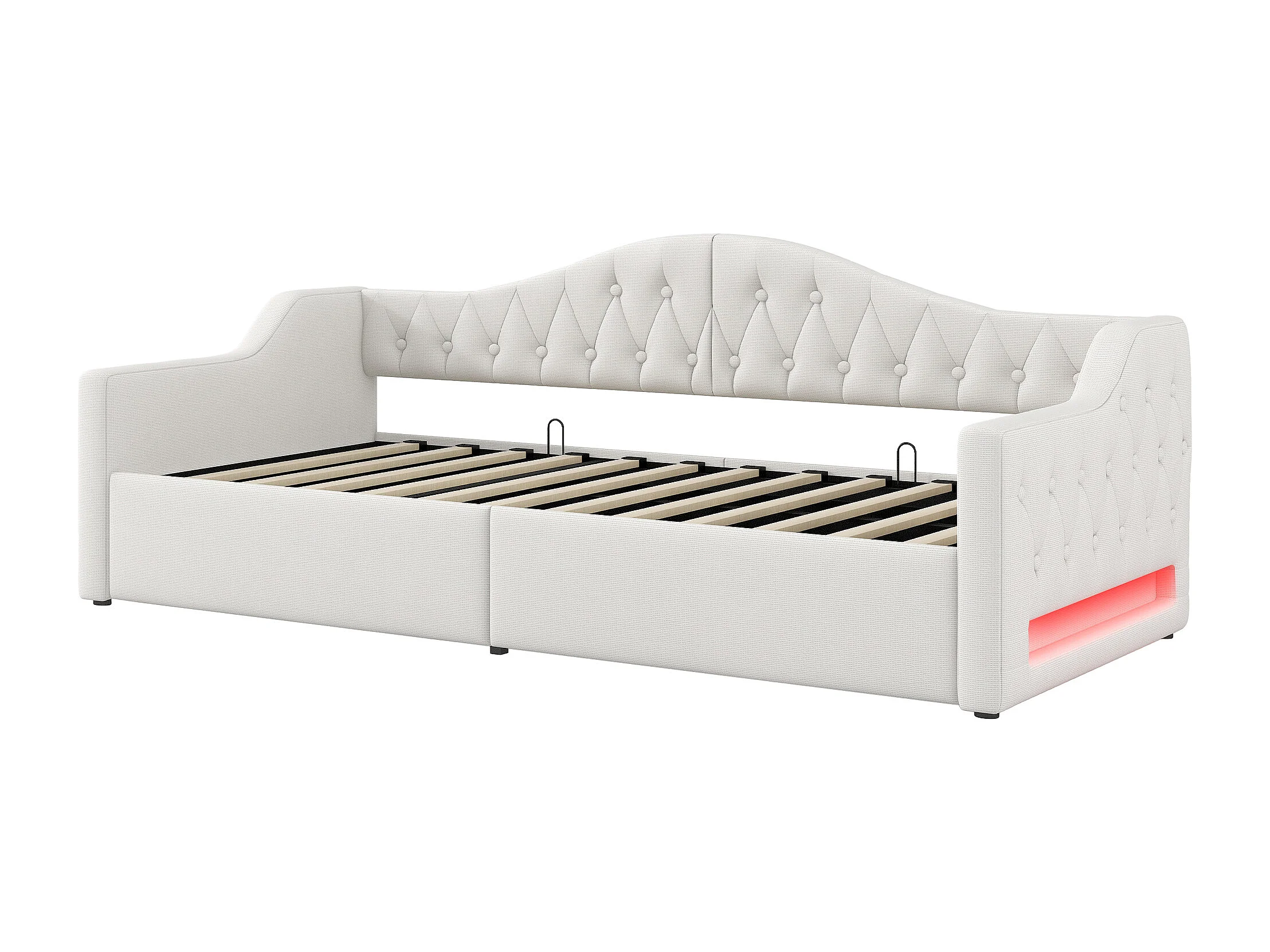 Opbergbed 900 x 200 cm - Kinderbed met LED-verlichting en armleuningen - beige linnen - zonder matras