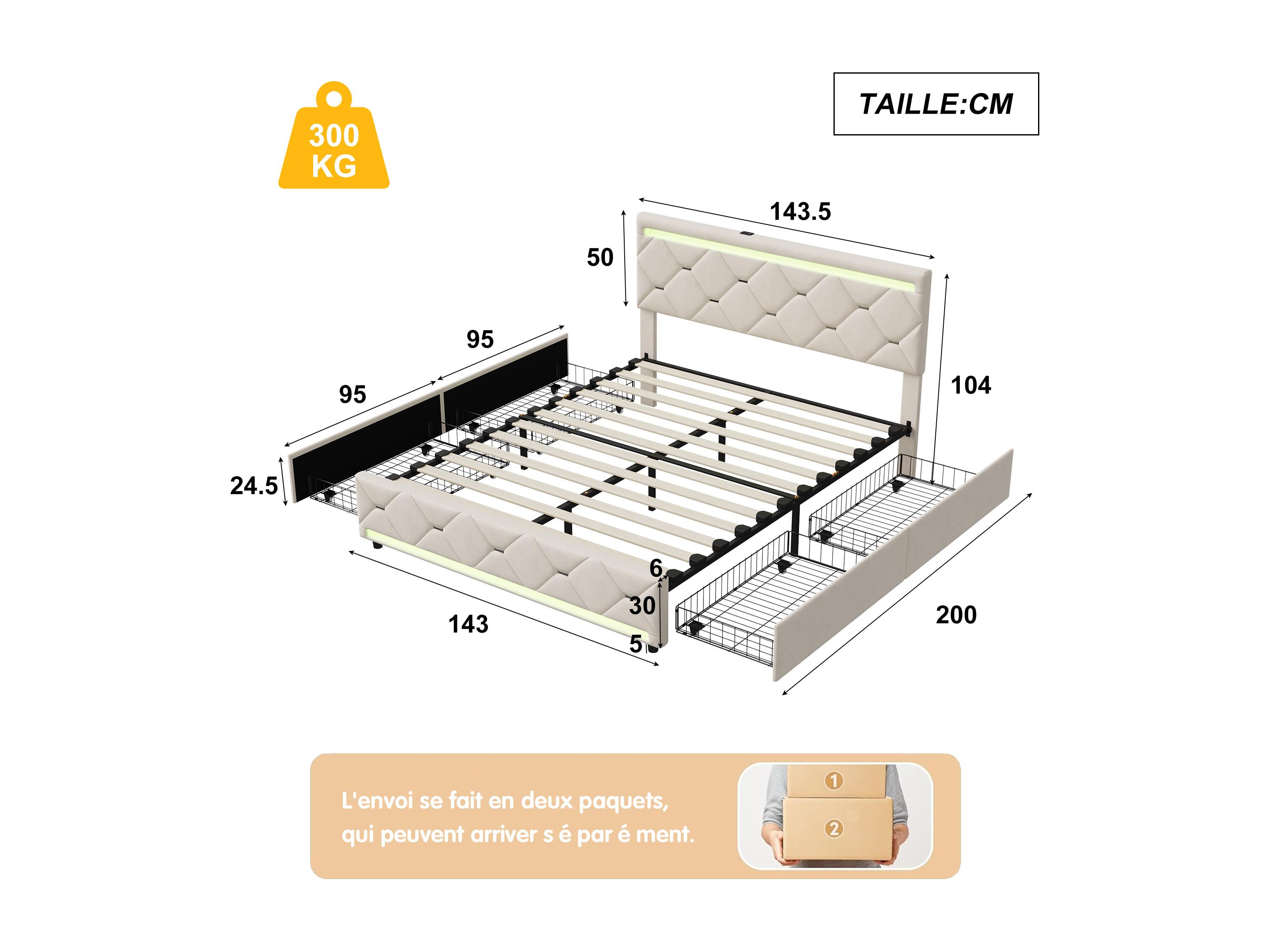 Dit Multifunctioneel bed met opbergruimte combineert elegantie, comfort en slimme opbergruimte. Het is een ideale oplossing om ruimte te optimaliseren en tegelijkertijd een vleugje moderniteit aan je slaapkamer toe te voegen.
